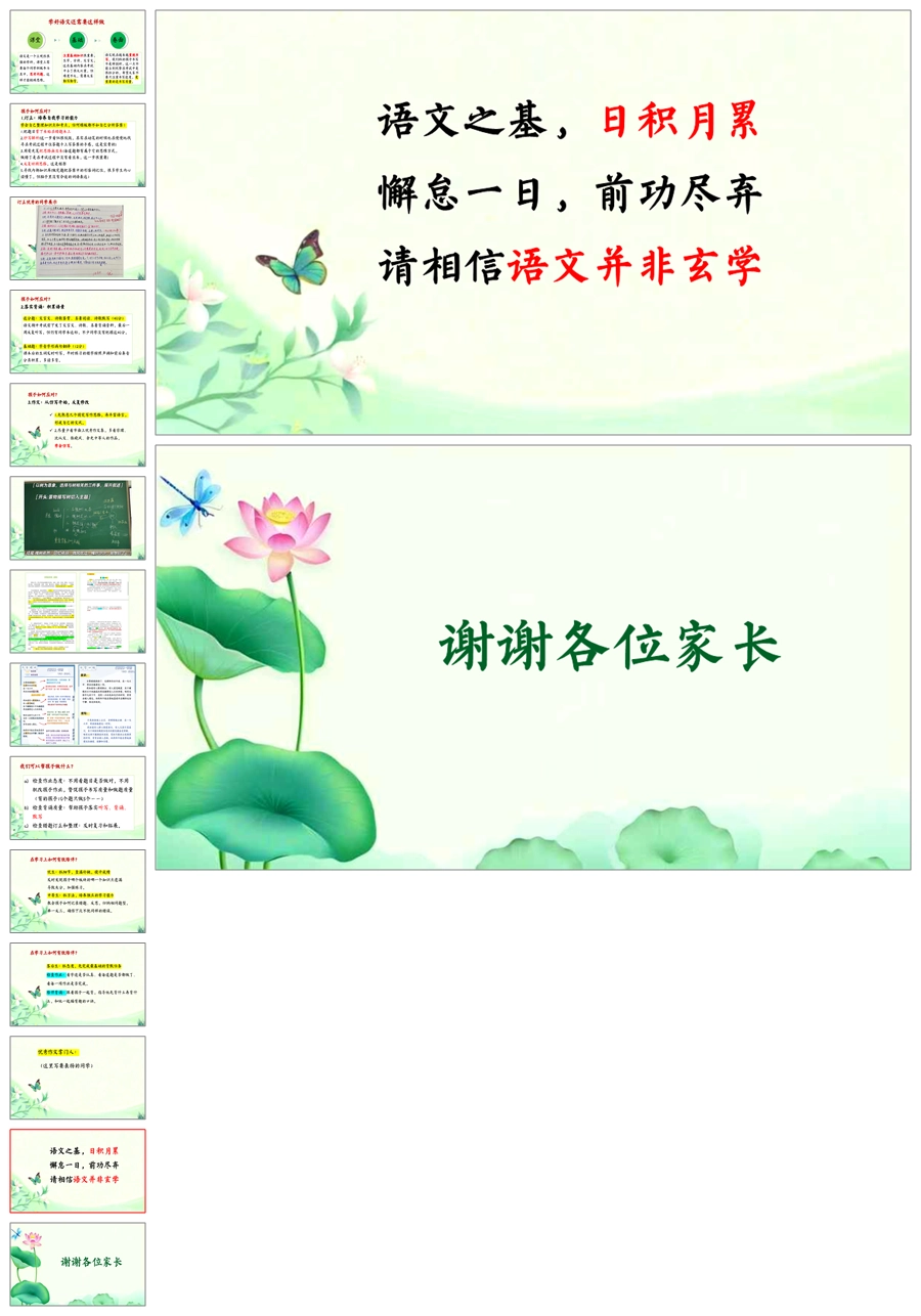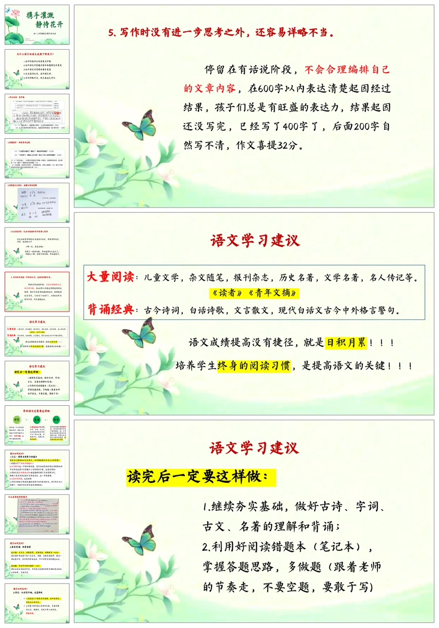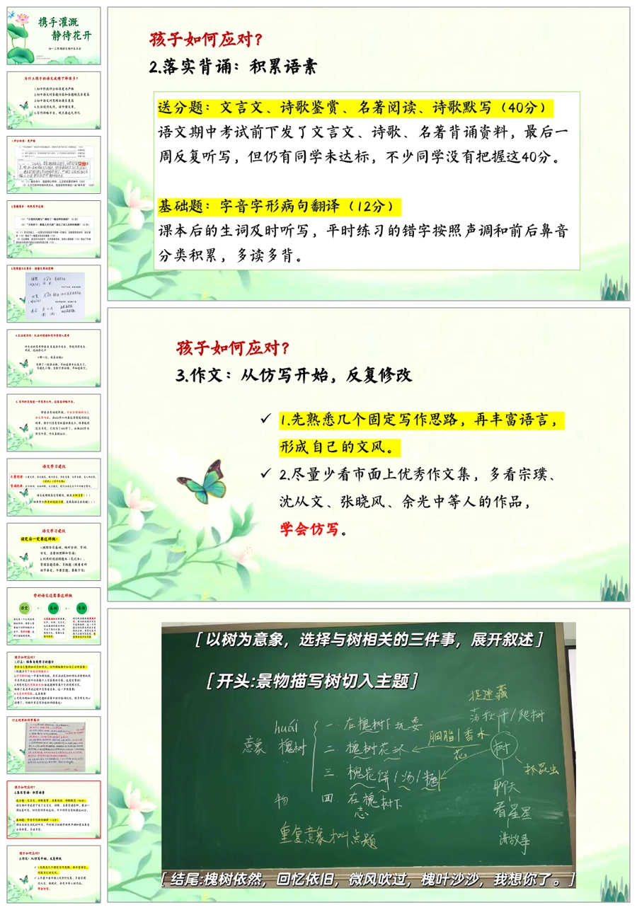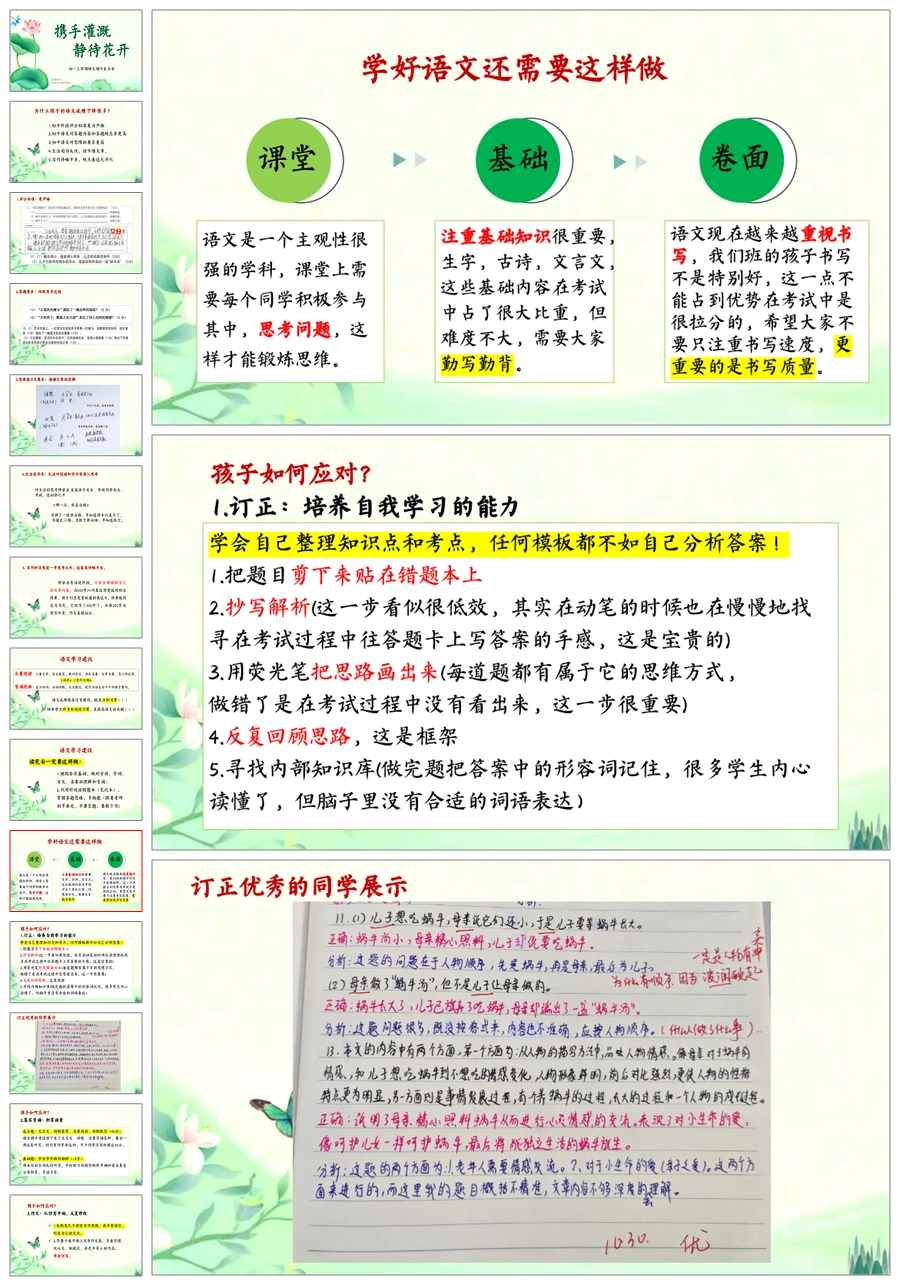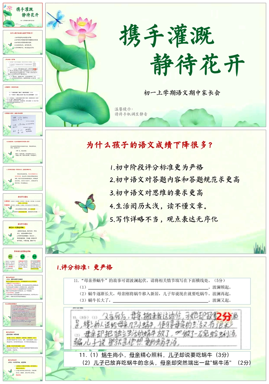【5215】【初一】【上学期】【语文】【携手灌溉,静待花开】七年级上学期期中家长会PPT课件+发言稿