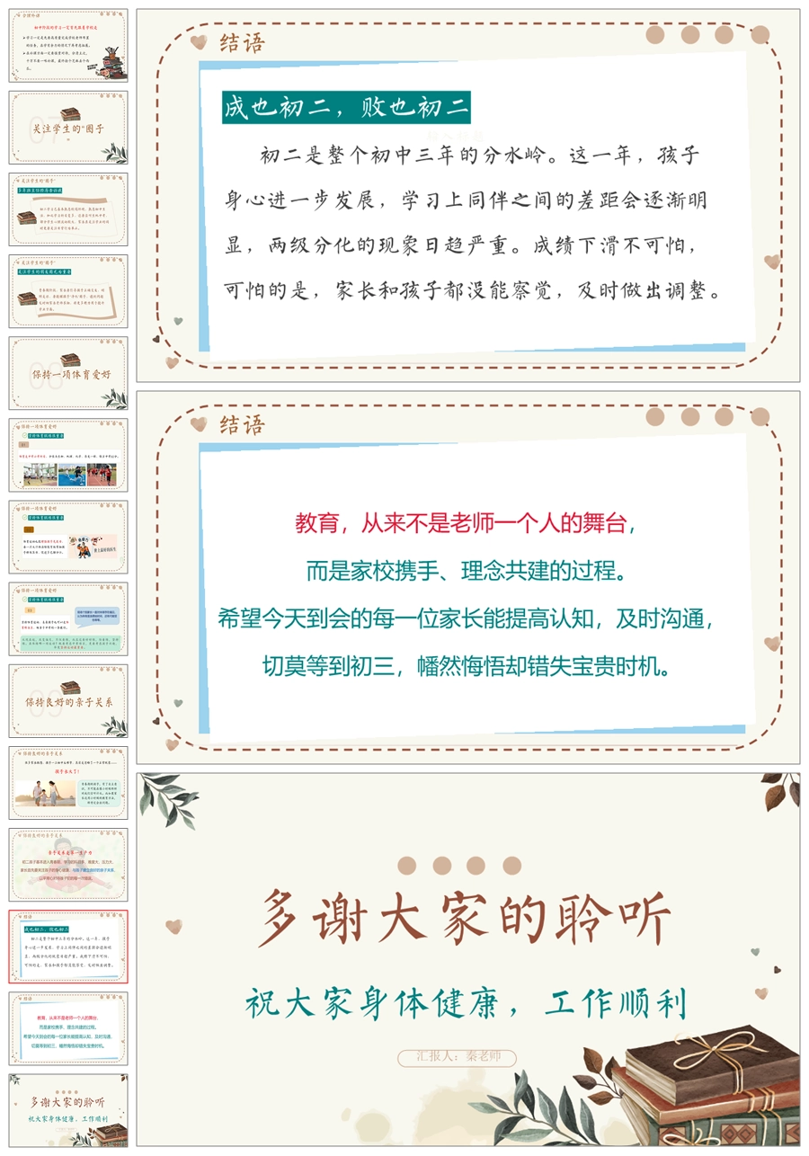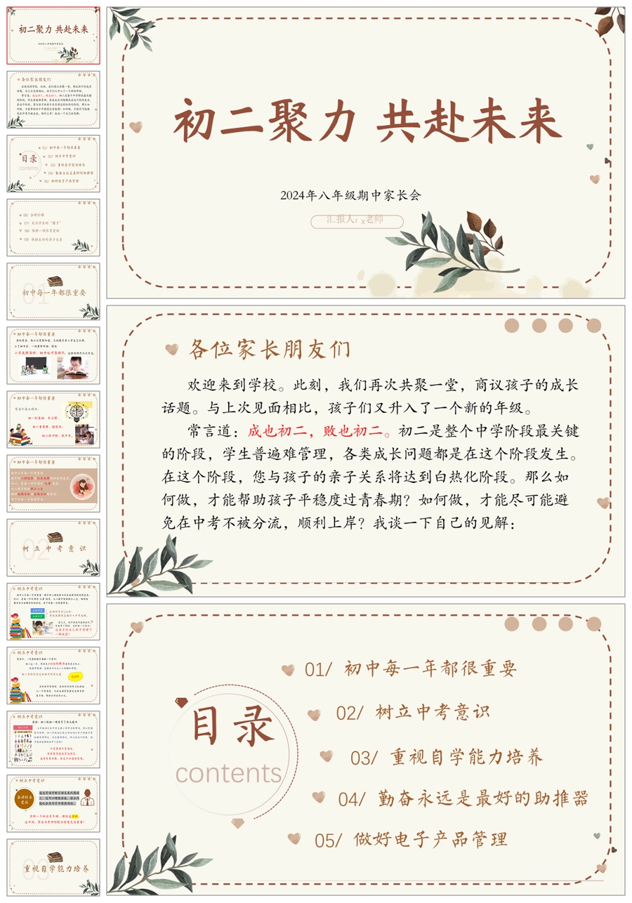 【5218】【初二】八年级期中家长会【初二聚力 共赴未来】PPT课件+发言稿