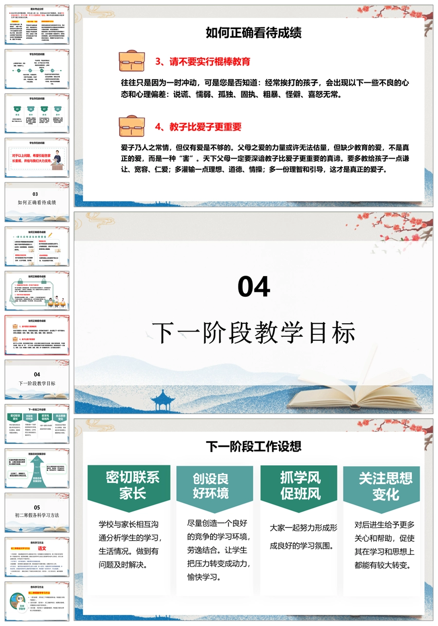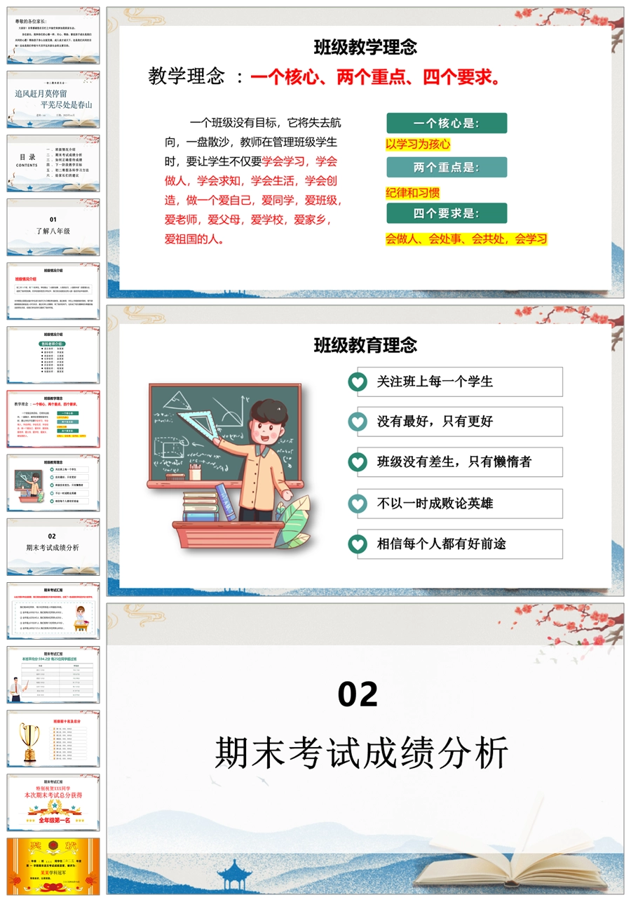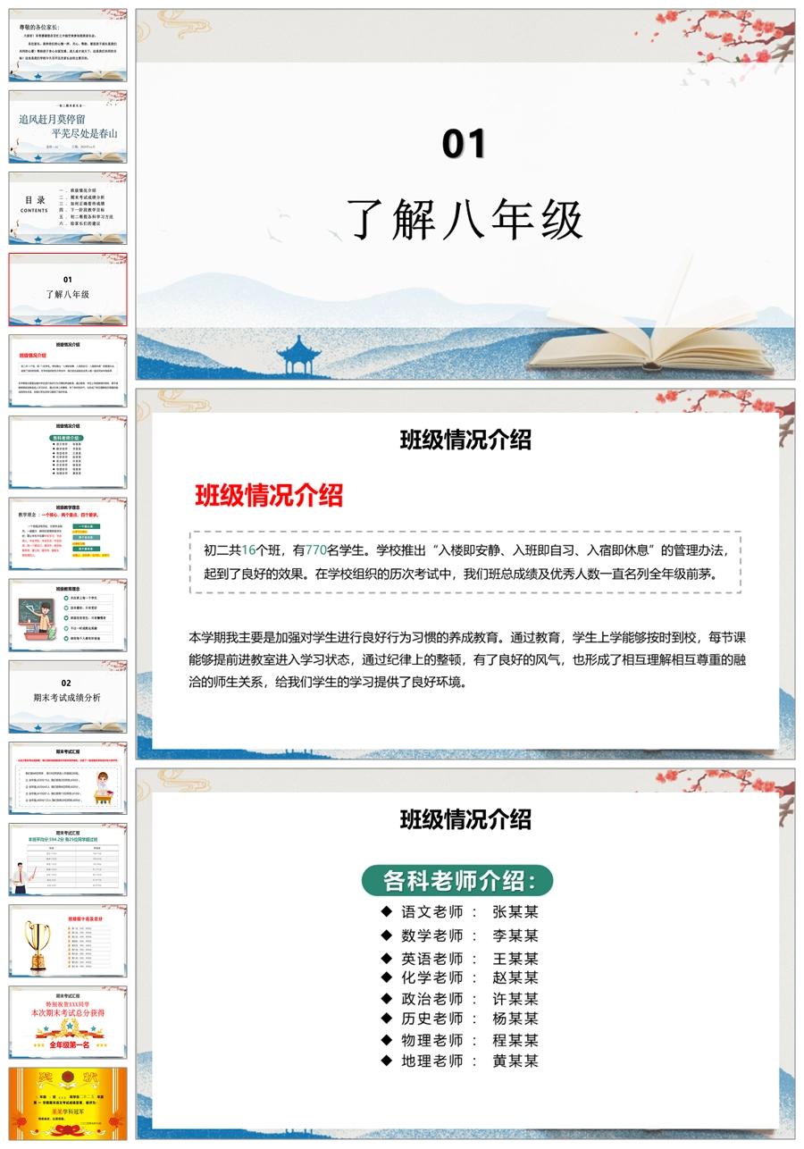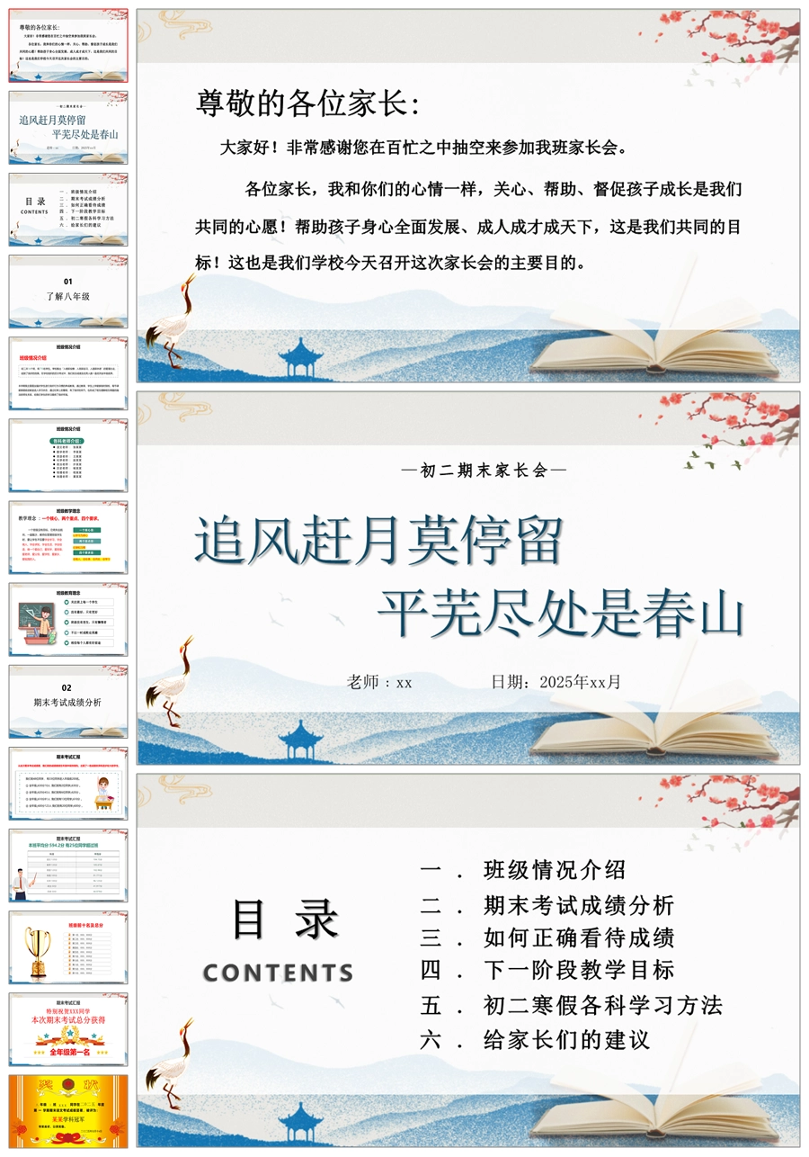 【5222】【初二】八年级期末家长会【追风赶月莫停留,平芜尽处是春山】PPT课件+发言稿