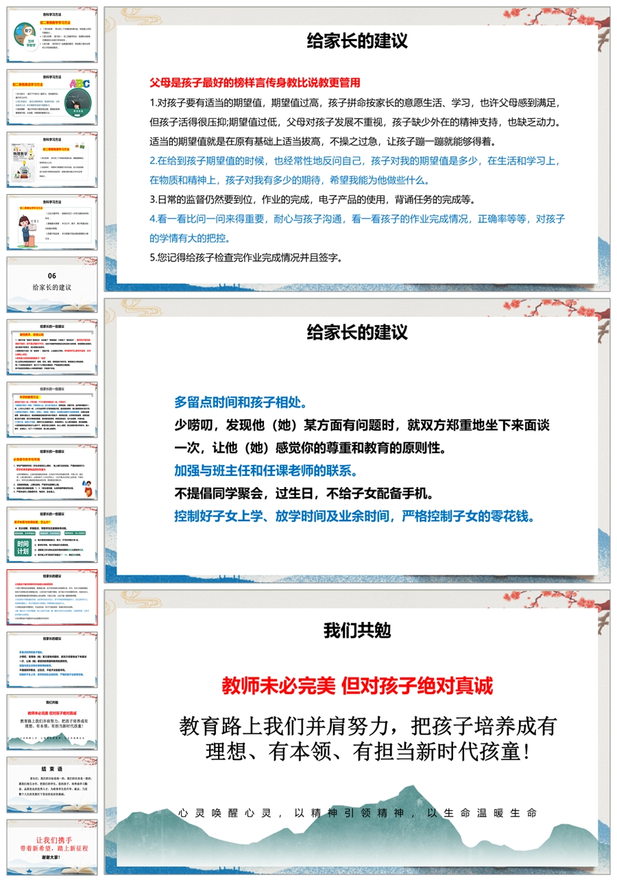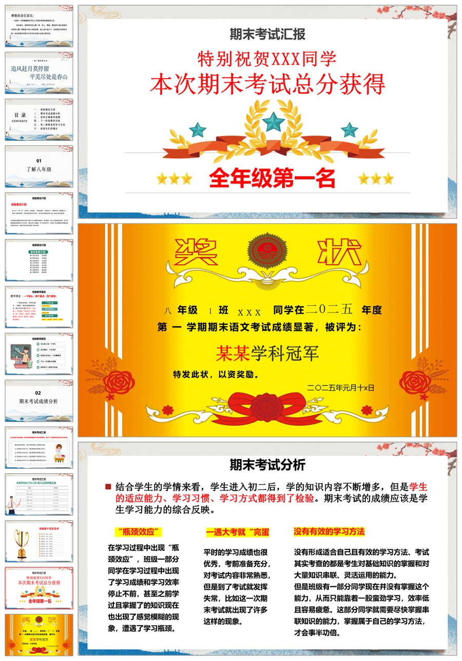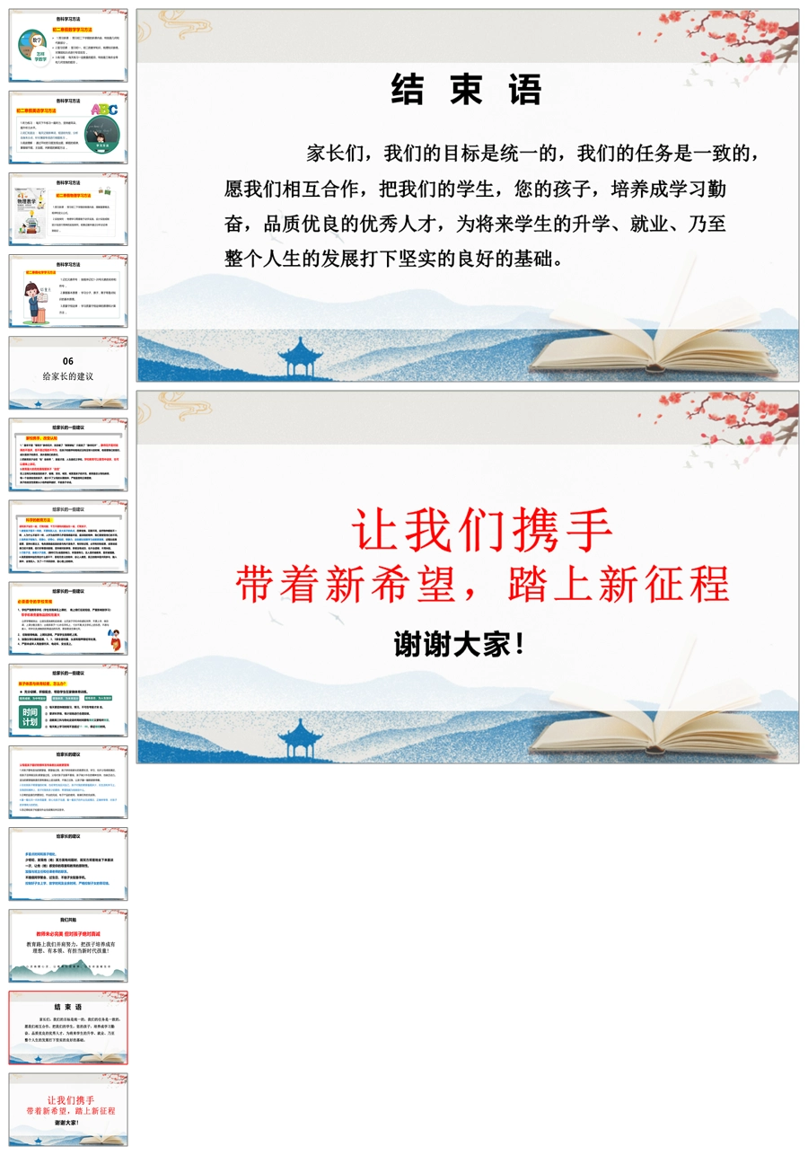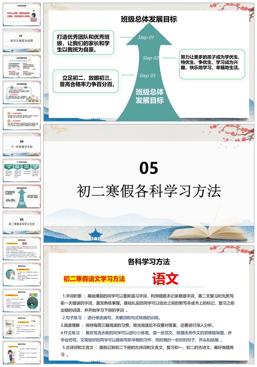 【5222】【初二】八年级期末家长会【追风赶月莫停留,平芜尽处是春山】PPT课件+发言稿