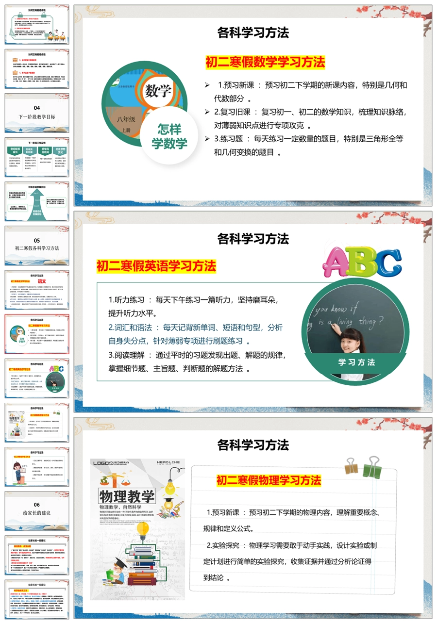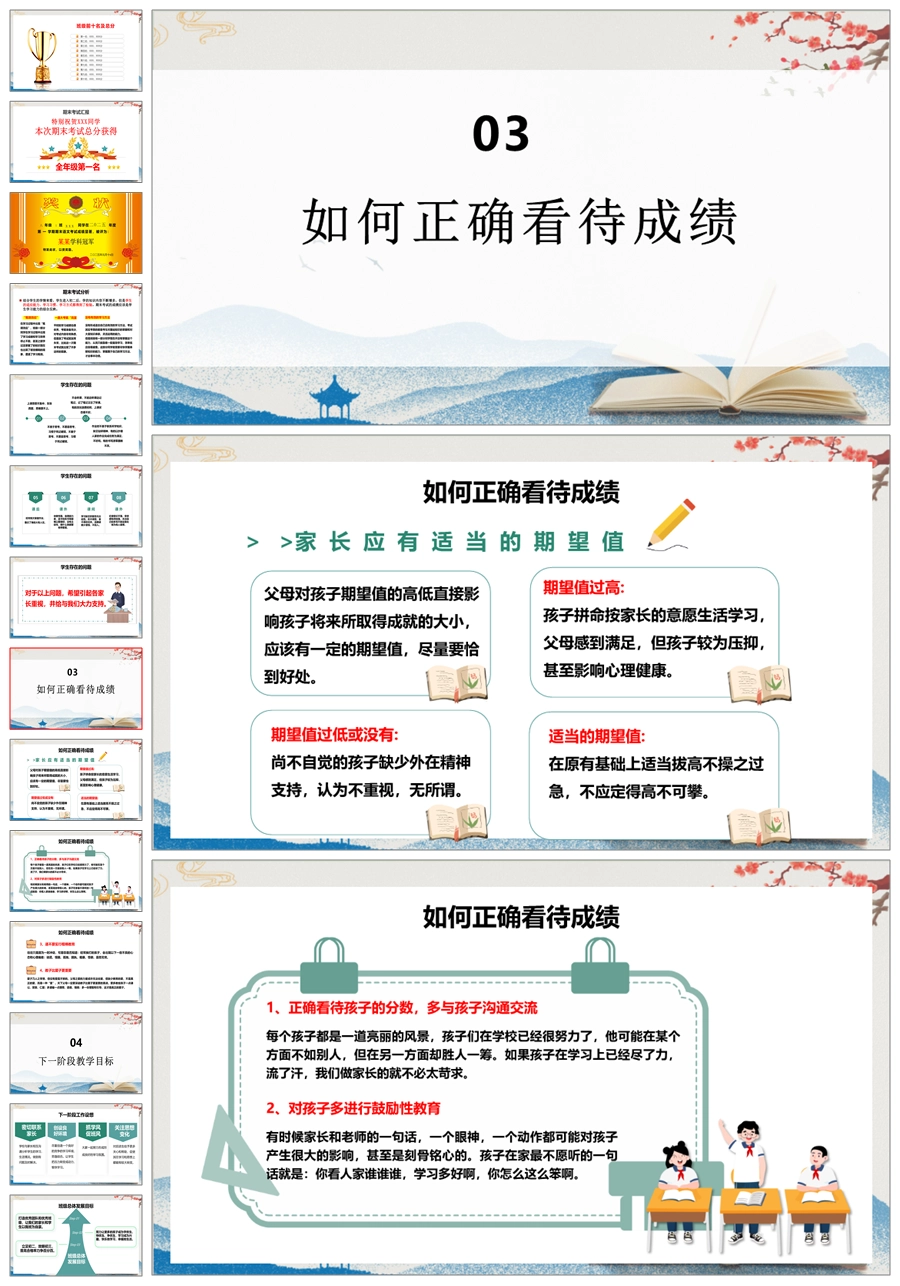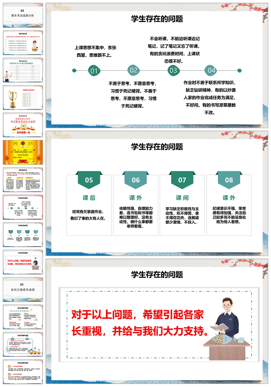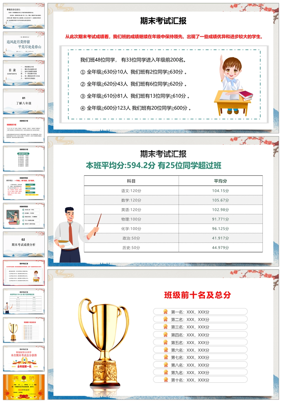 【5222】【初二】八年级期末家长会【追风赶月莫停留,平芜尽处是春山】PPT课件+发言稿