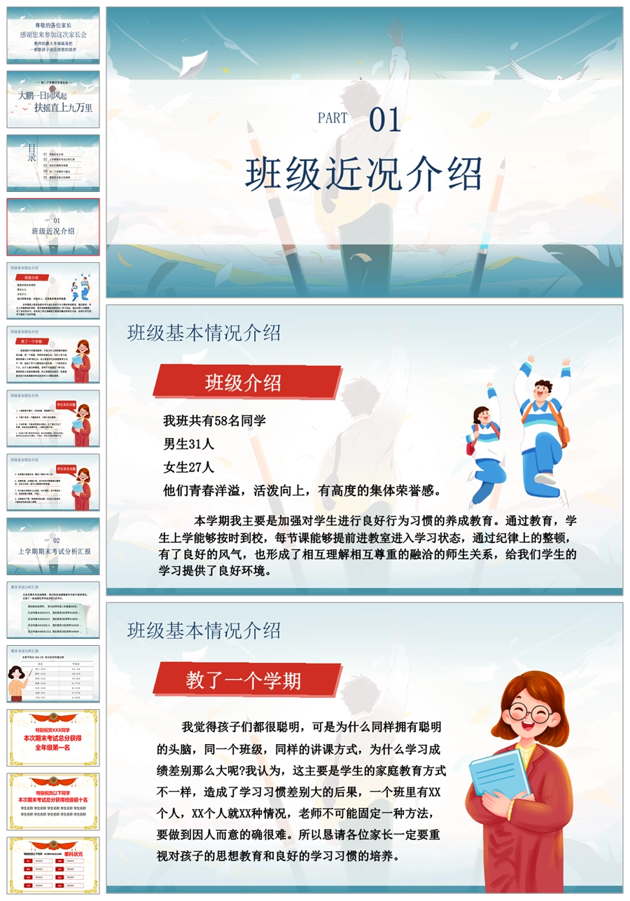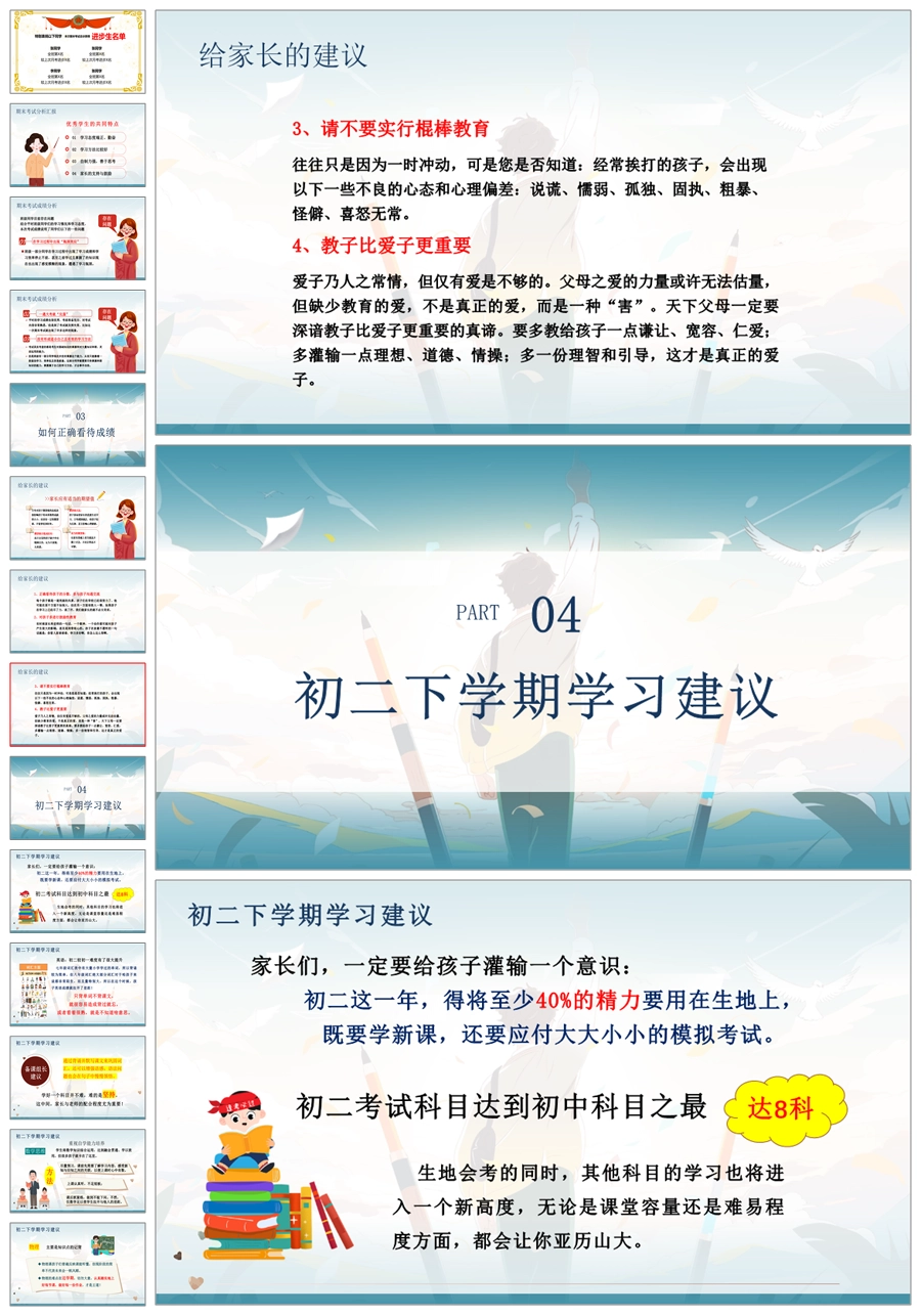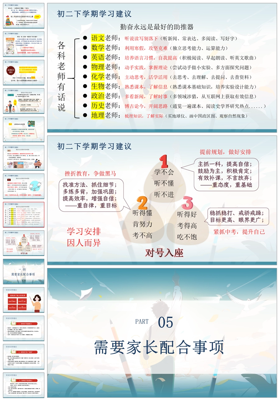 【5224】【初二】八年级下开学家长会【大鹏一日同风起,扶摇直上九万里】PPT课件+发言稿
