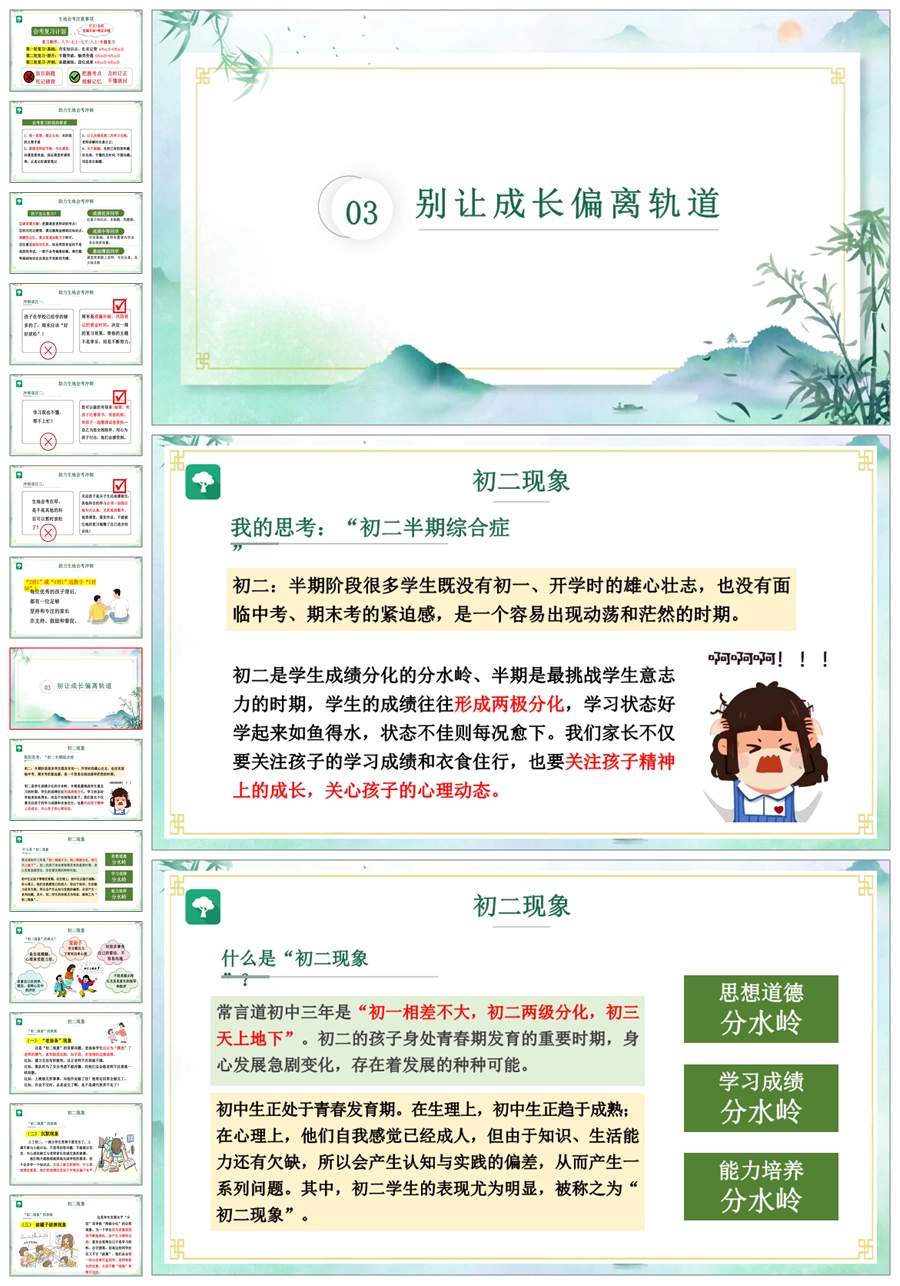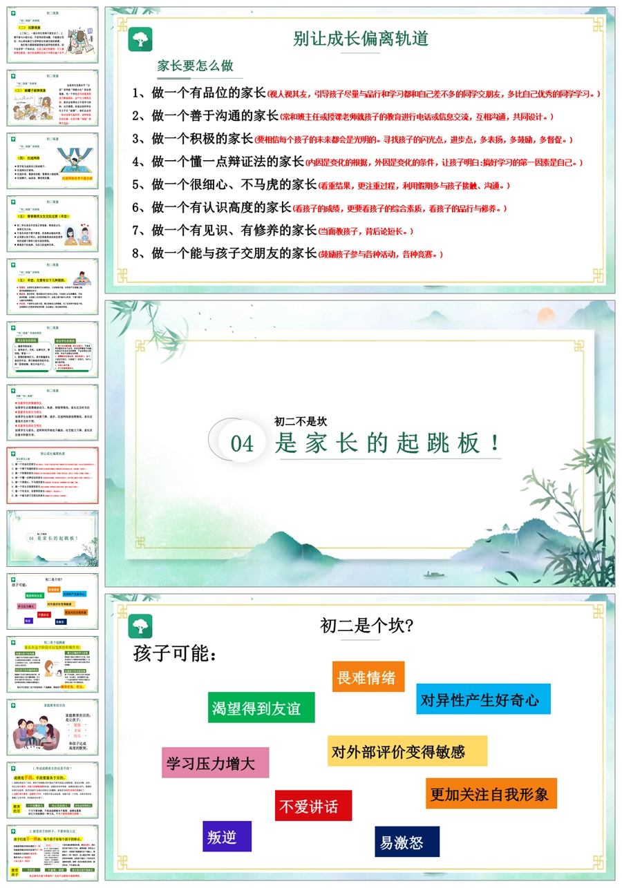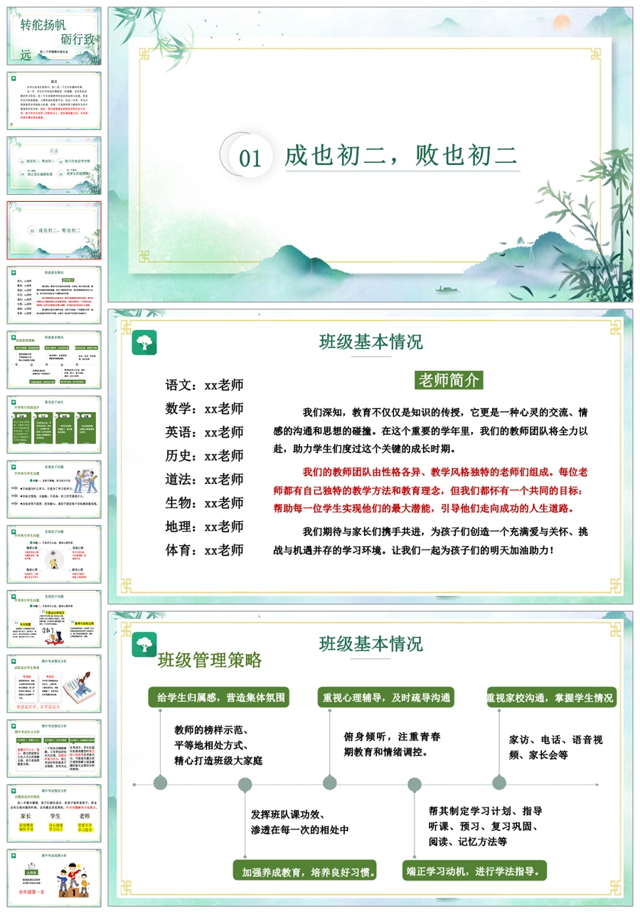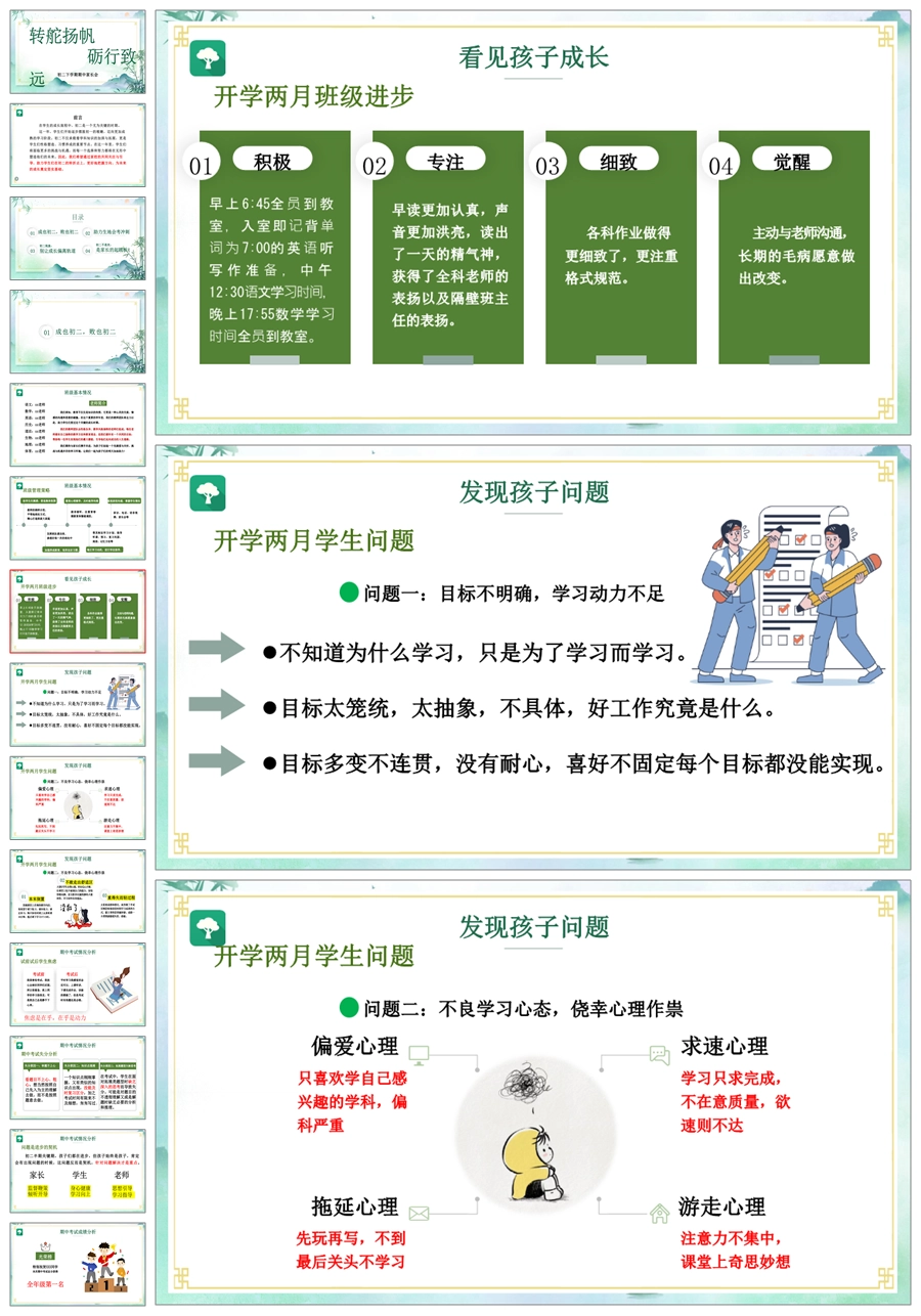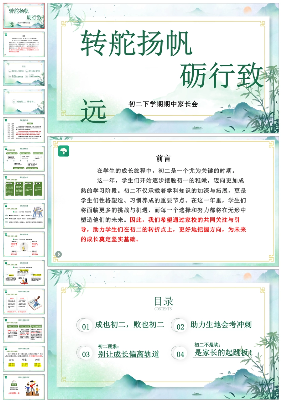 首页 初二家长会 【5225】【初二】【下学期】【转舵扬帆,砺行致远】八年级期中家长会PPT课件+发言稿