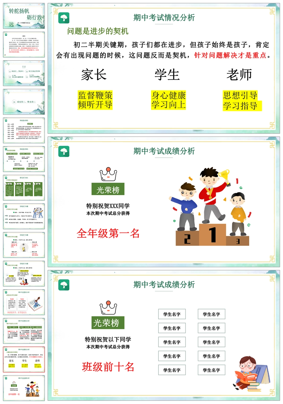 【5225】【初二】【下学期】【转舵扬帆,砺行致远】八年级期中家长会PPT课件+发言稿