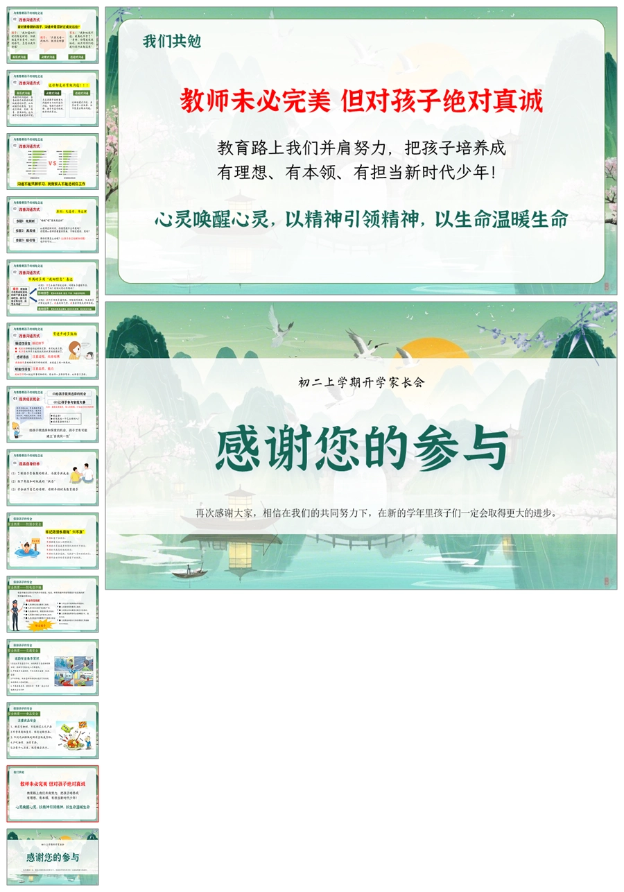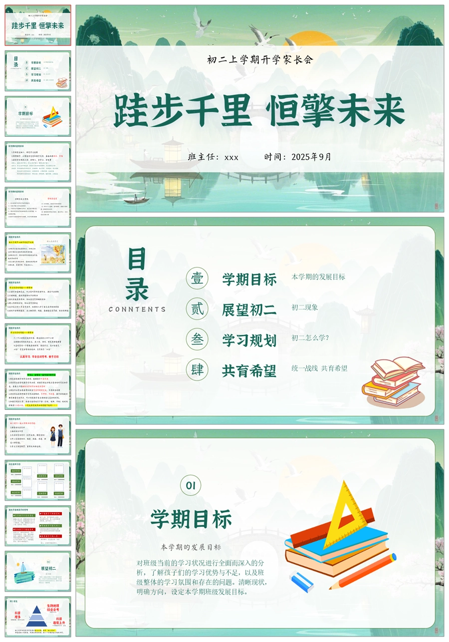 首页 初二家长会 【5229】【初二】【上学期】【跬步千里,恒擎未来】八年级开学家长会PPT课件+发言稿