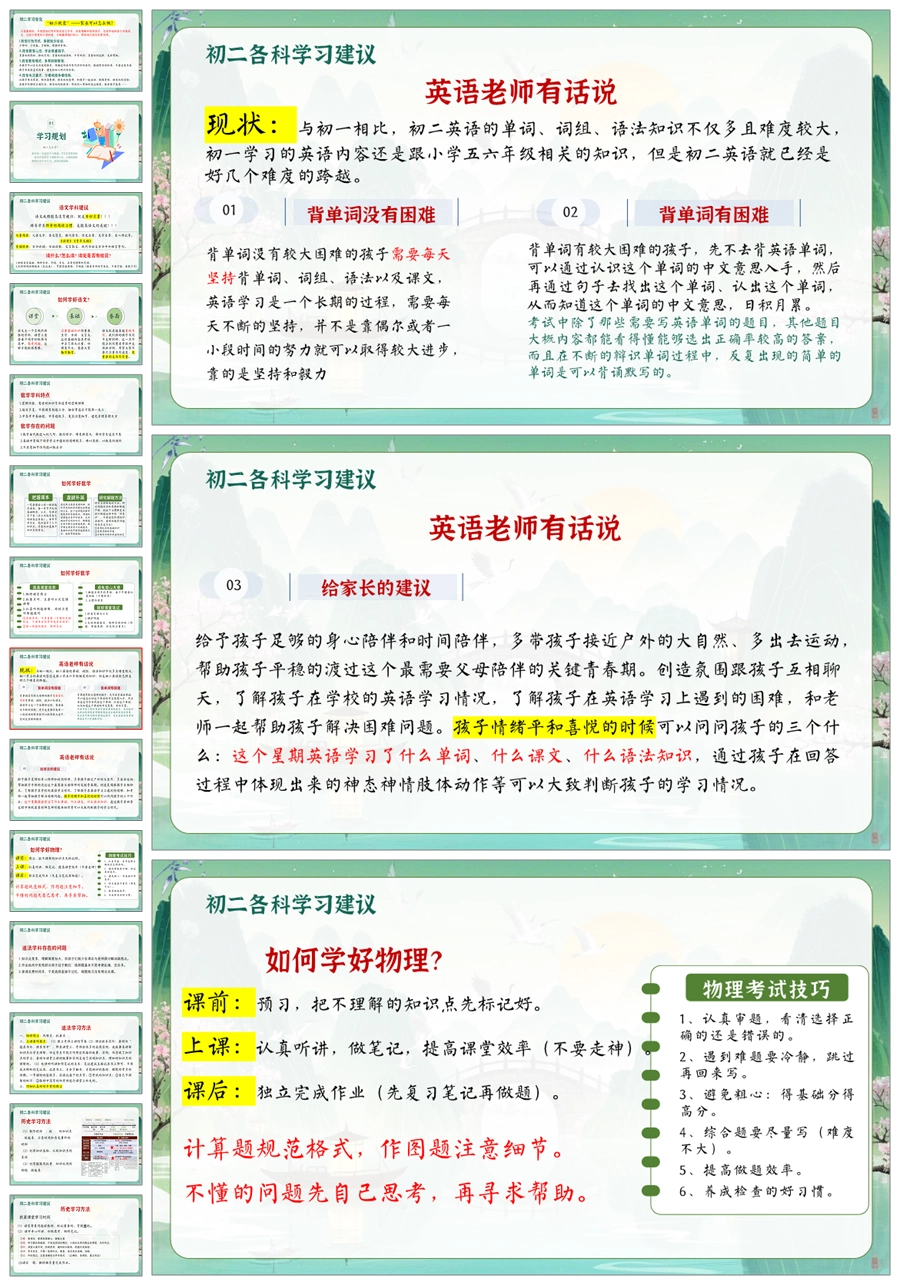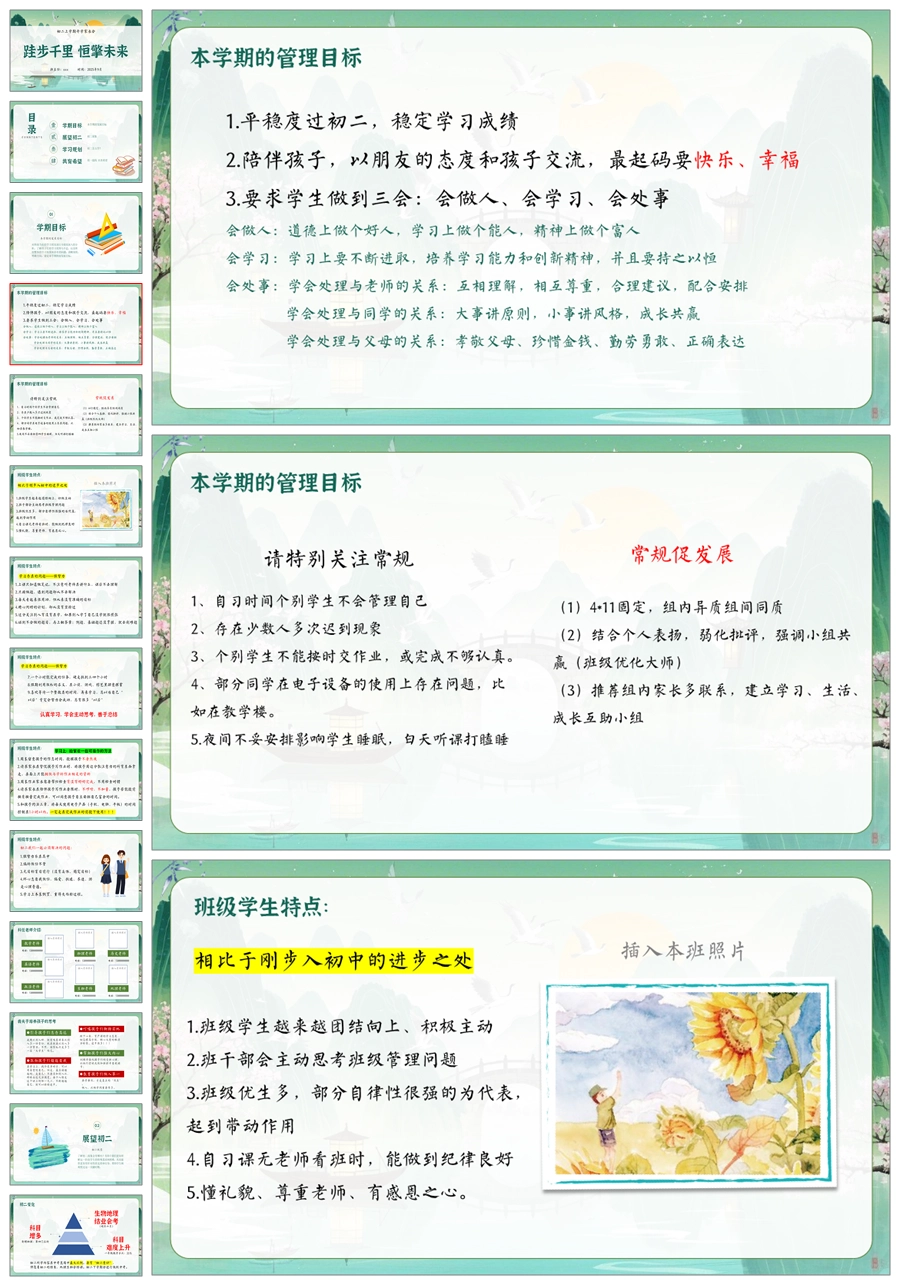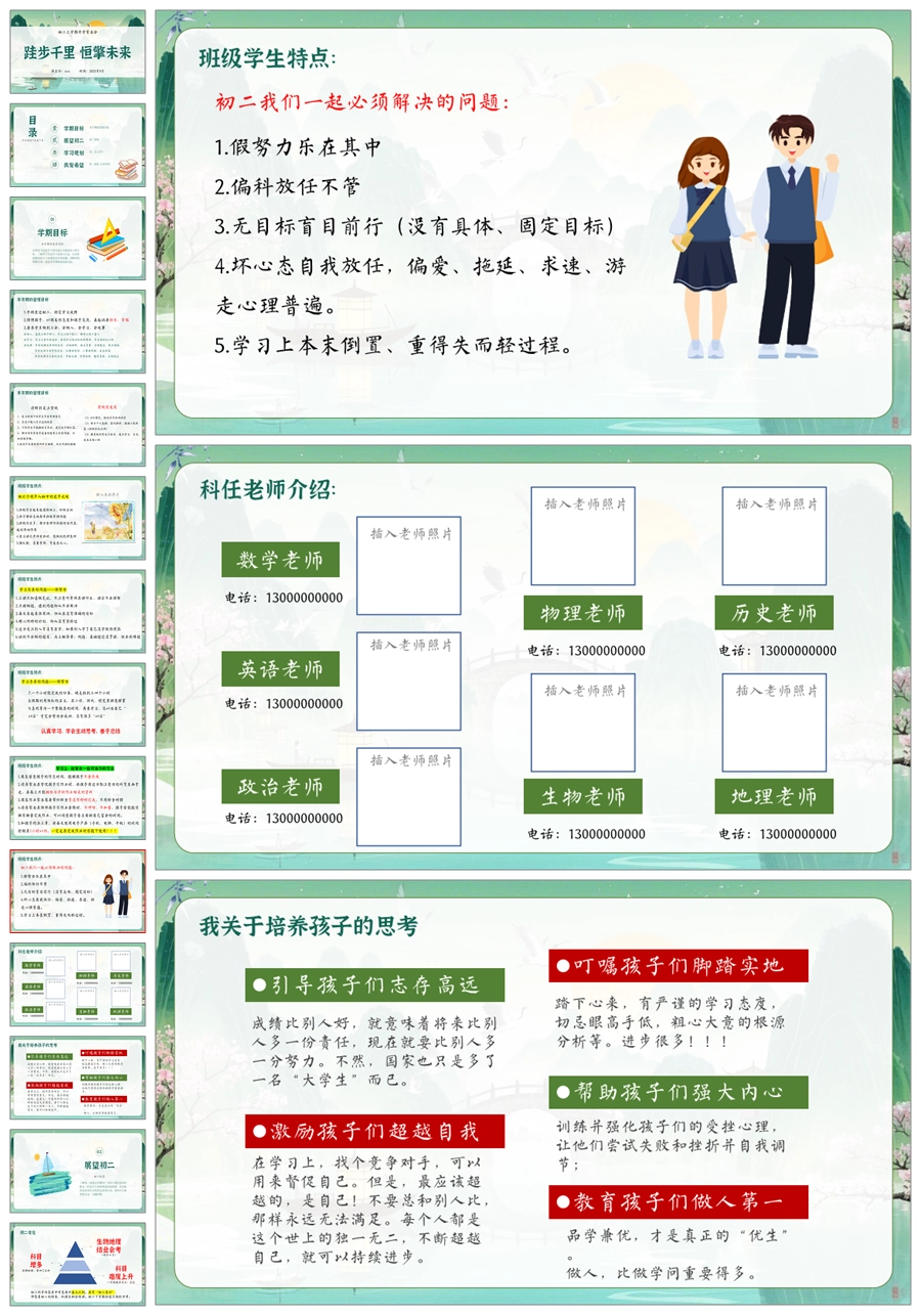 【5229】【初二】【上学期】【跬步千里,恒擎未来】八年级开学家长会PPT课件+发言稿