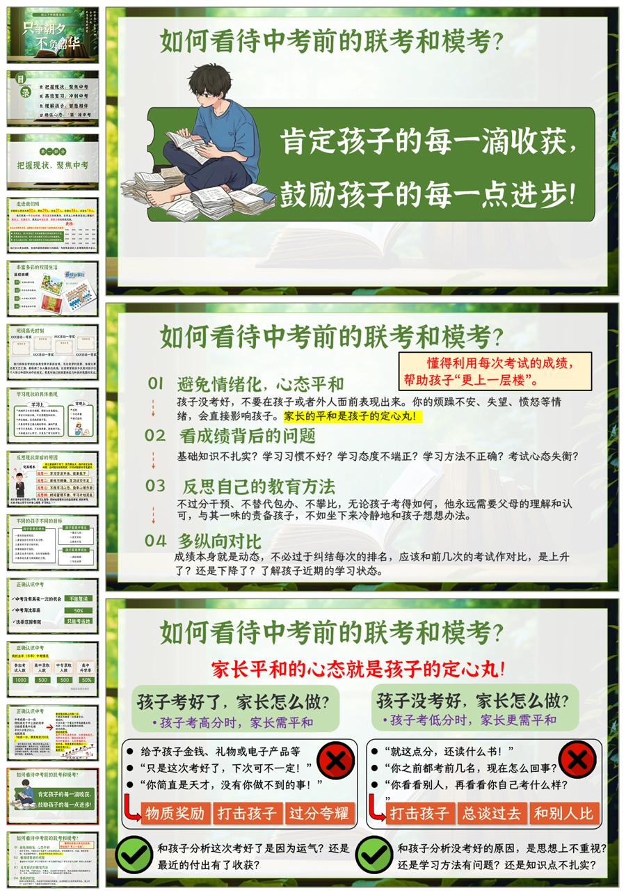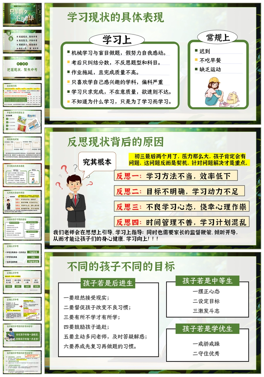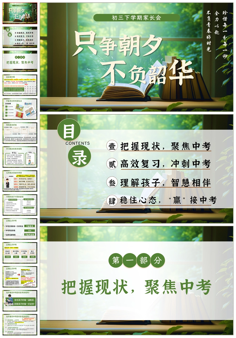【5243】【初三】【下学期】【只争朝夕,不负韶华】九年级家长会PPT课件+发言稿