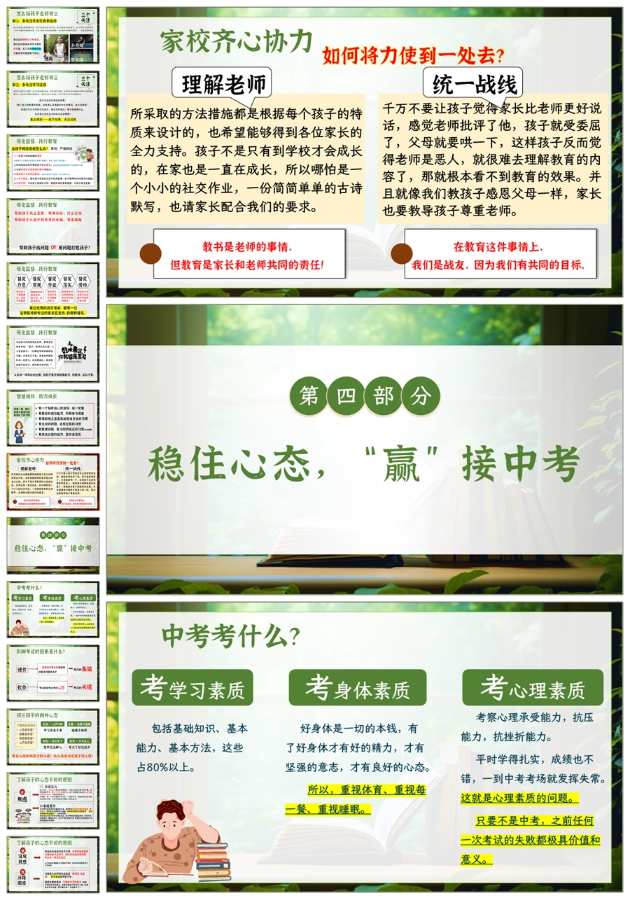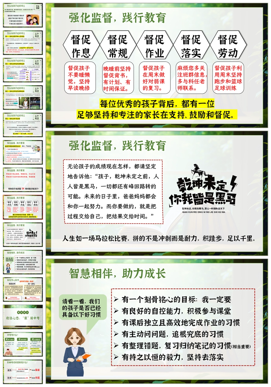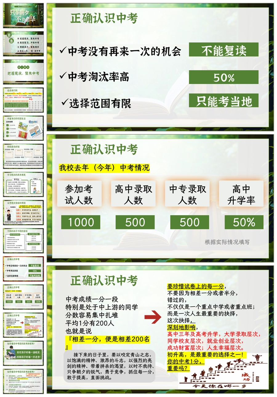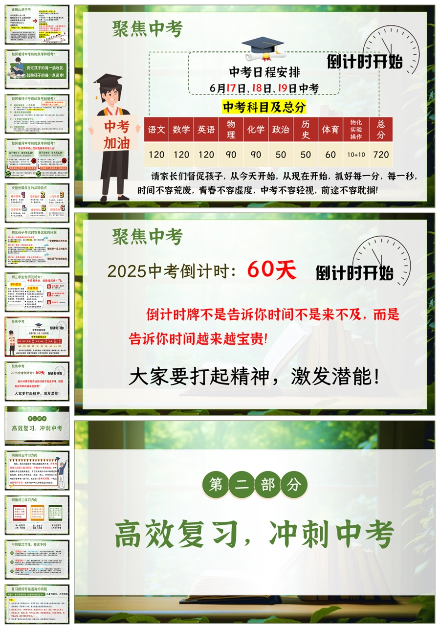 【5243】【初三】【下学期】【只争朝夕,不负韶华】九年级家长会PPT课件+发言稿