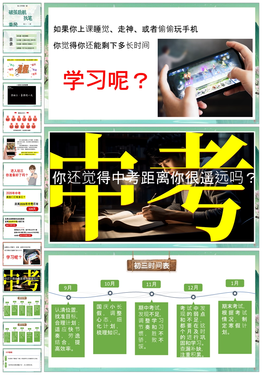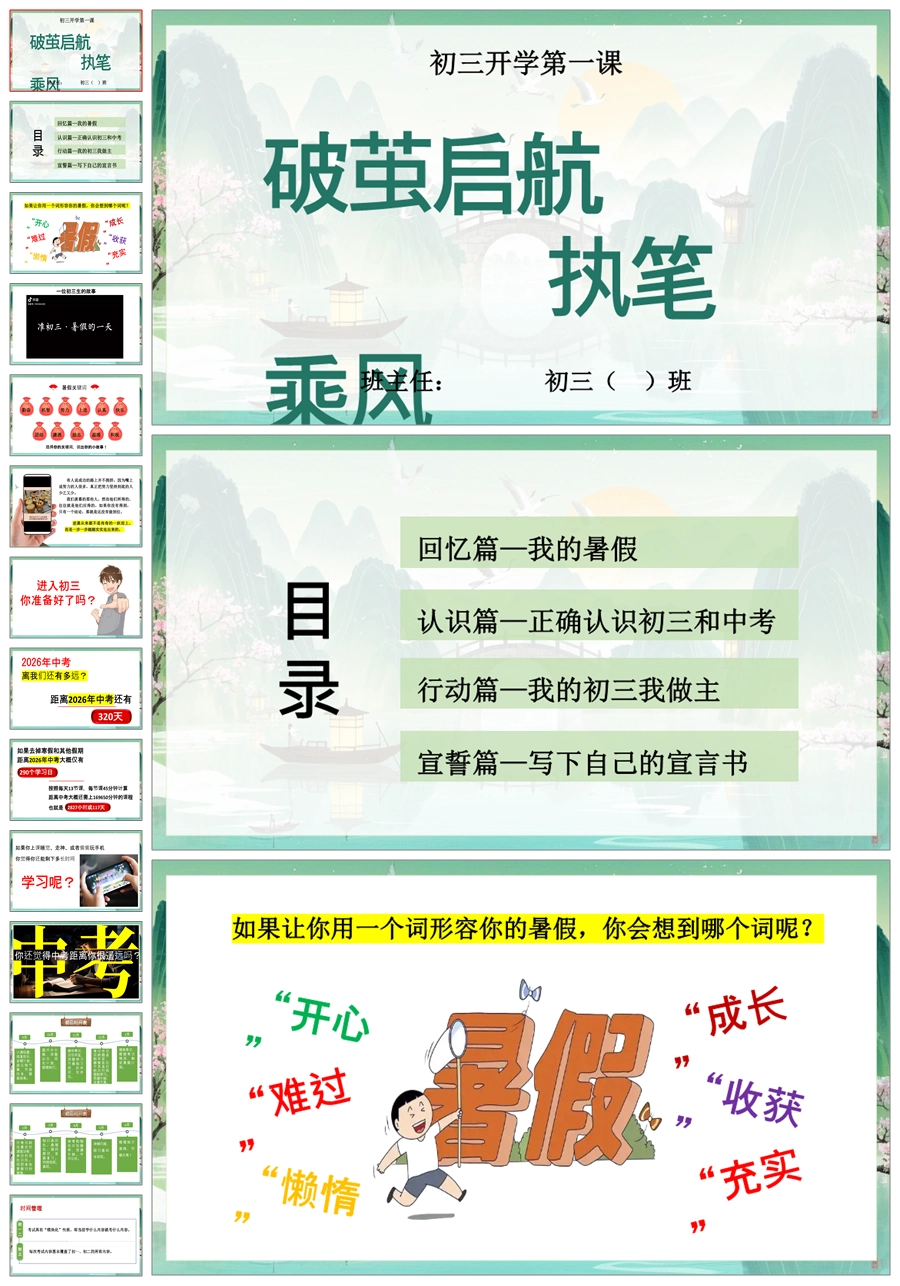 【5247】【初三上学期】九年级开学第一课【破茧启航,执笔乘风】PPT课件+发言稿