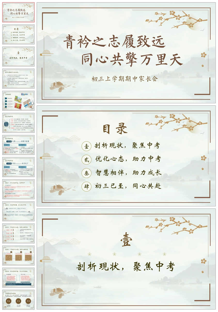 首页 初三家长会 【5250】【初三上学期】【青衿之志履致远,同心共擎万里天】九年级期中家长会PPT课件+发言稿