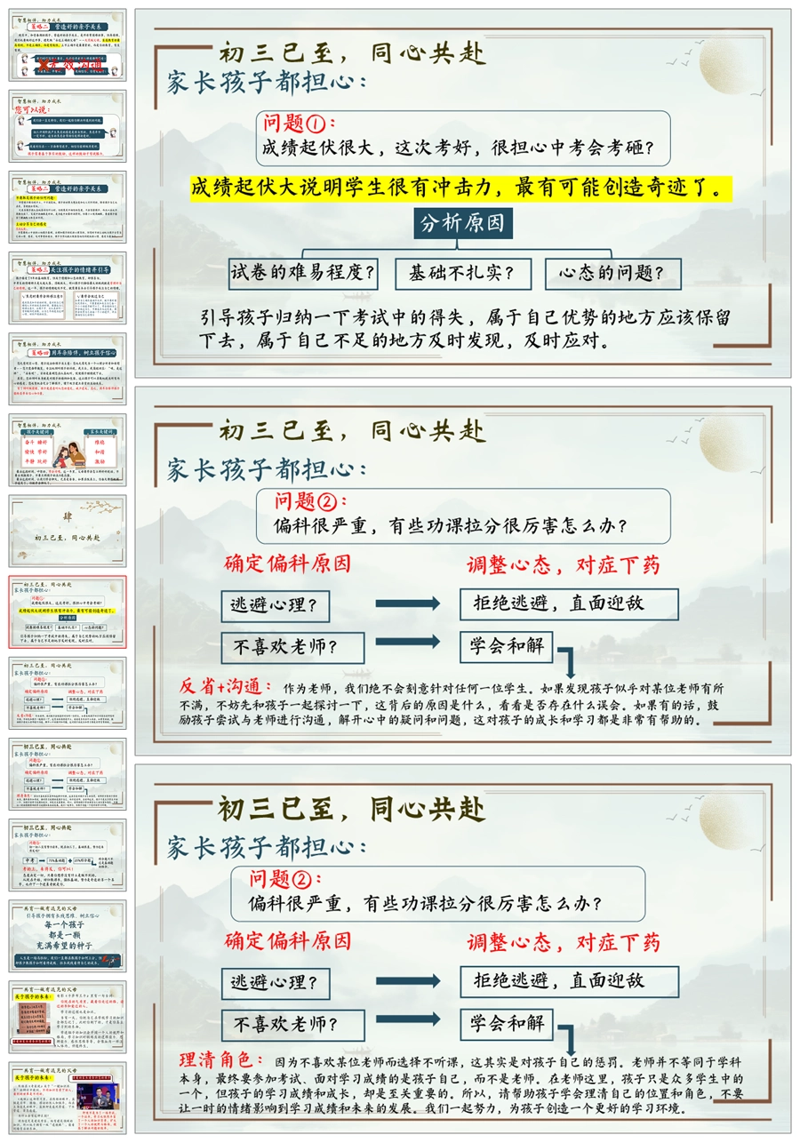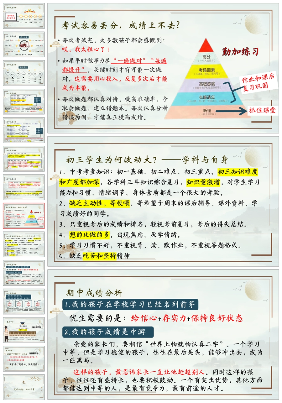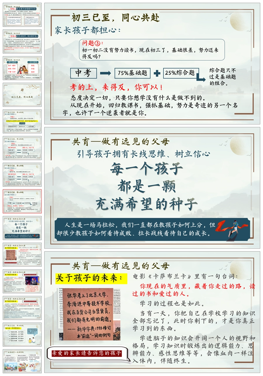【5250】【初三上学期】【青衿之志履致远,同心共擎万里天】九年级期中家长会PPT课件+发言稿