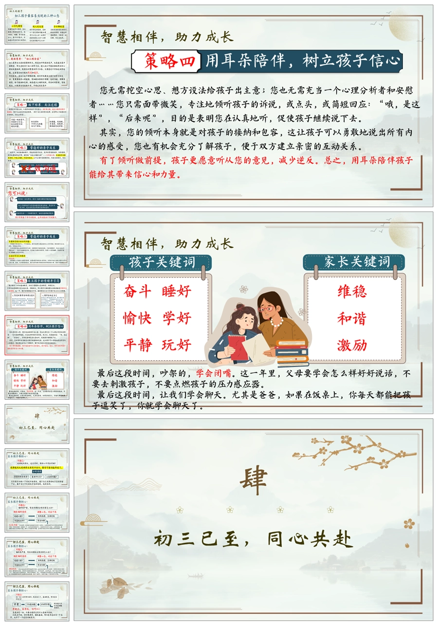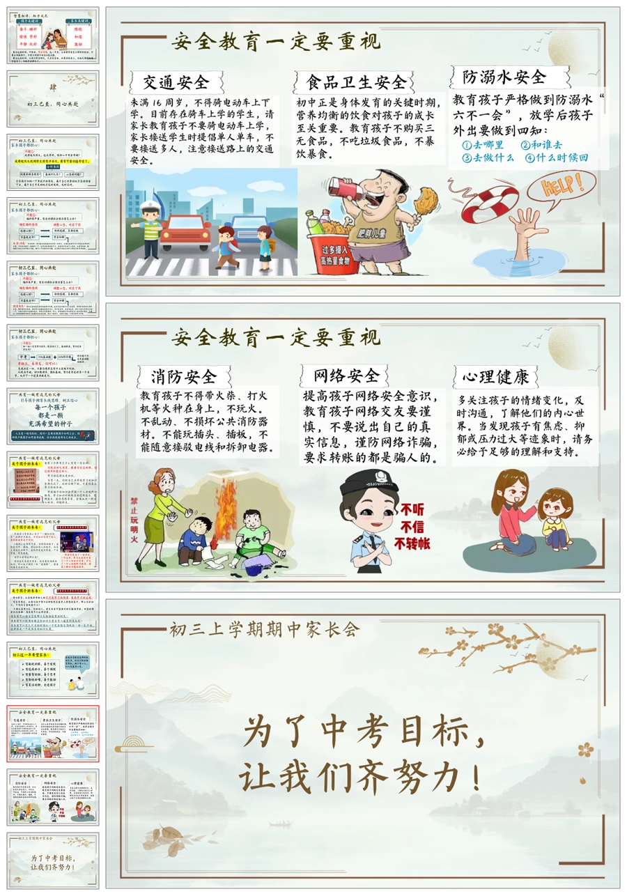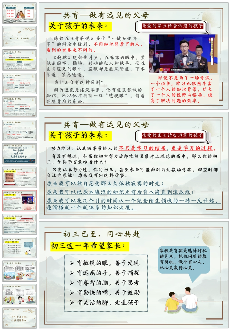 【5250】【初三上学期】【青衿之志履致远,同心共擎万里天】九年级期中家长会PPT课件+发言稿
