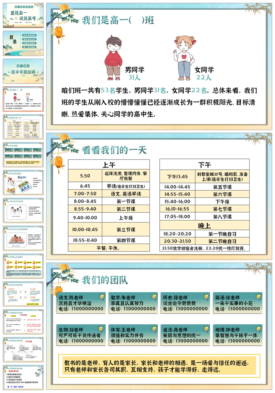 【5190】【高一上】【重视高一,成就高考】高一上学期期中家长会PPT课件+发言稿