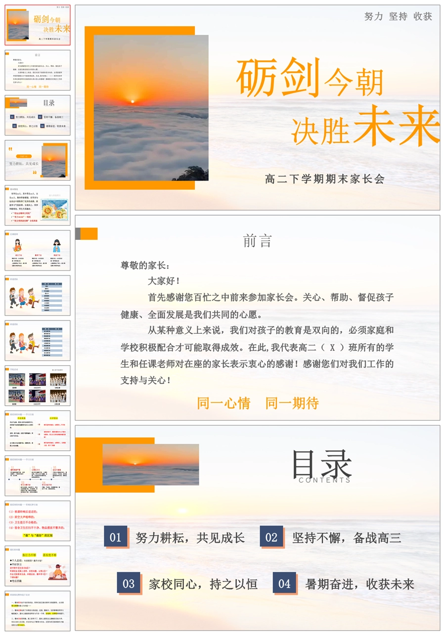 首页 高二家长会 【5212】【高二下】【砺剑今朝,决胜未来】高二下学期期末家长会PPT课件+发言稿
