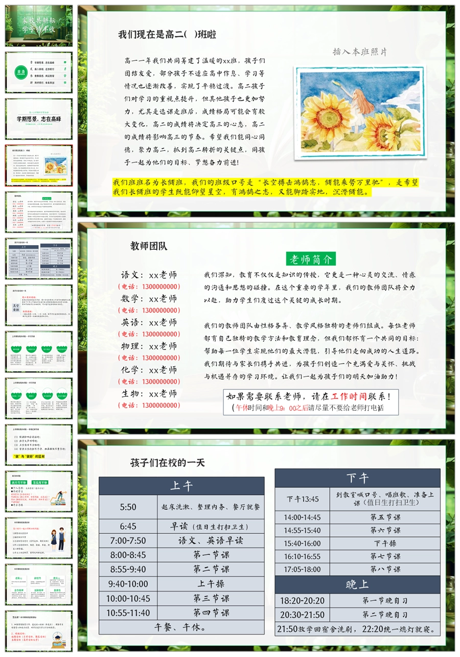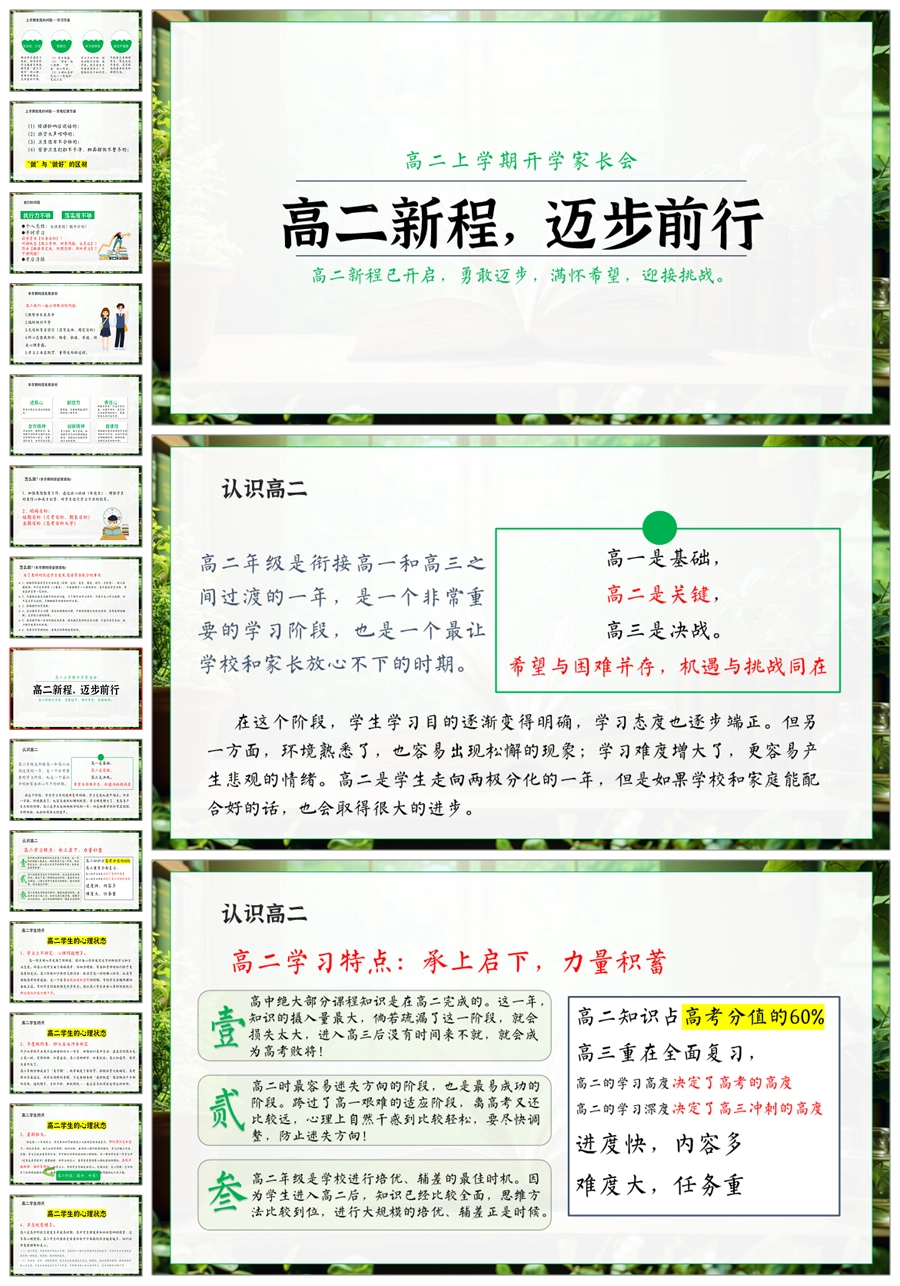 【5215】【高二上】【家校共耕耘,学子待丰收】高二上学期开学家长会PPT课件+发言稿