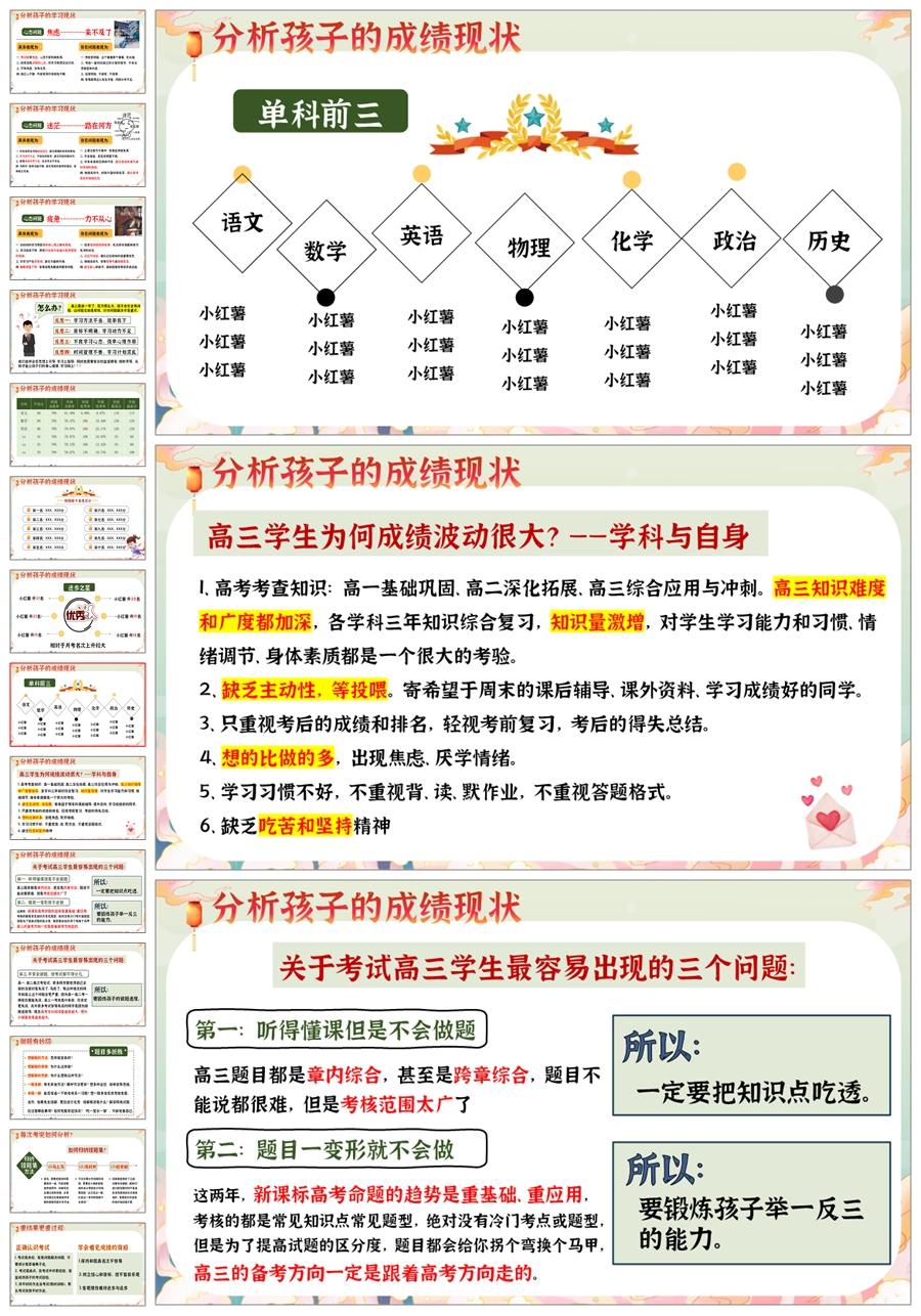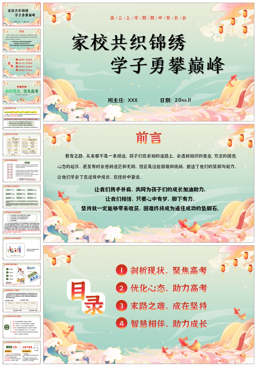 【5219】【高三】高三上学期期中家长会【家校共织锦绣,学子勇攀巅峰】PPT课件+发言稿