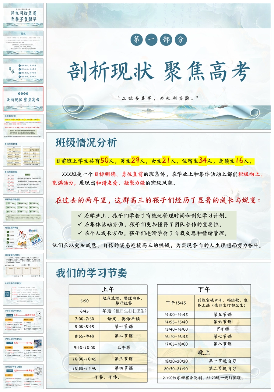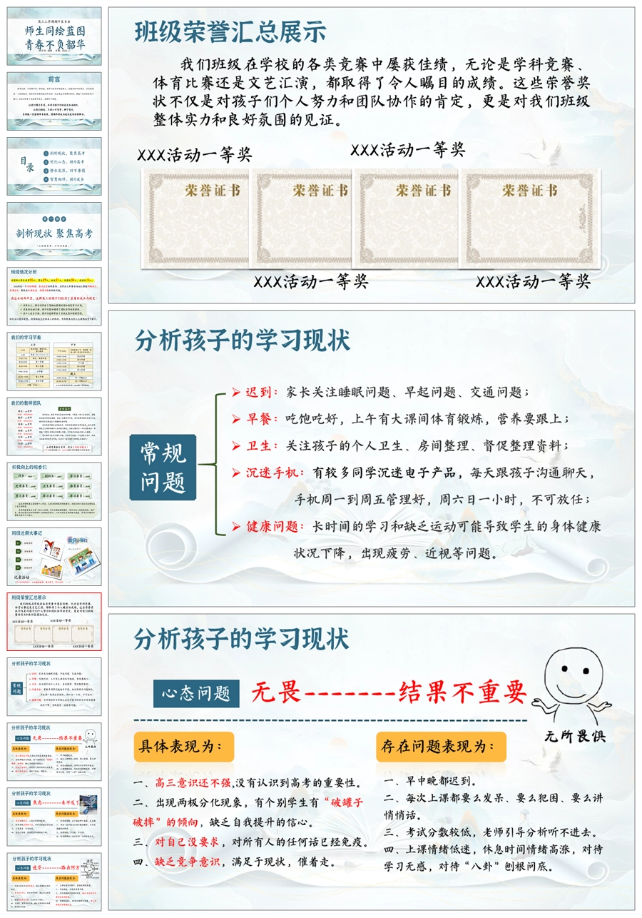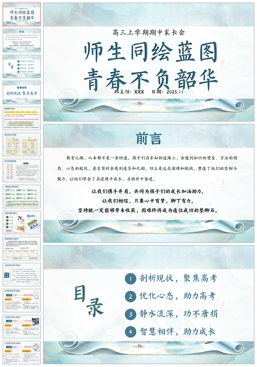 首页 高三家长会 【5228】【高三上】【师生同绘蓝图,青春不负韶华】高三上学期期中家长会PPT课件+发言稿