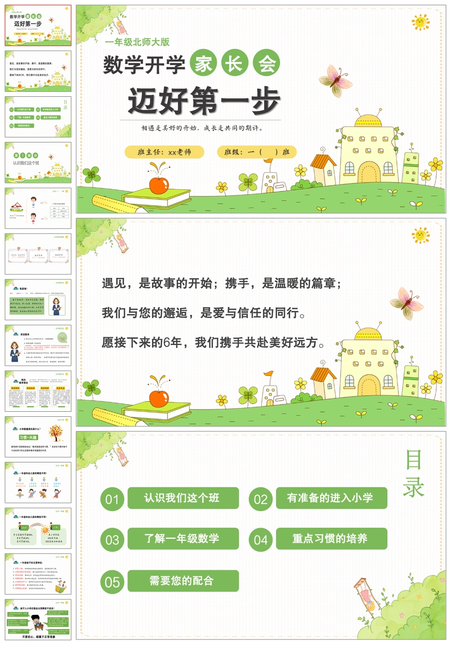 【5231】【一上】【数学】【迈好第一步】一年级上学期开学家长会-北师大版PPT课件+发言稿