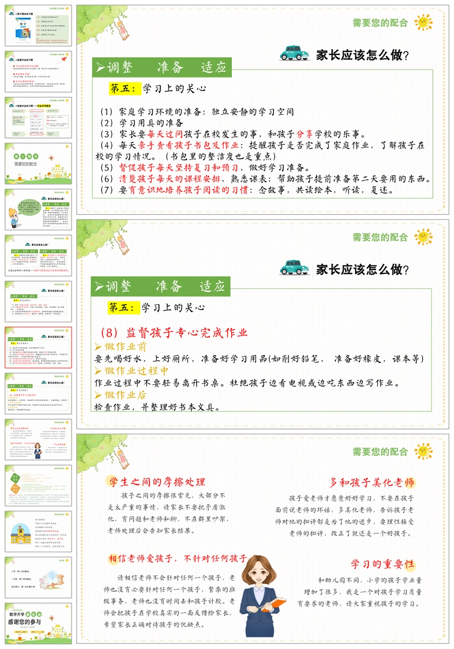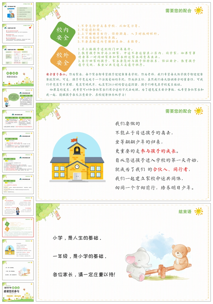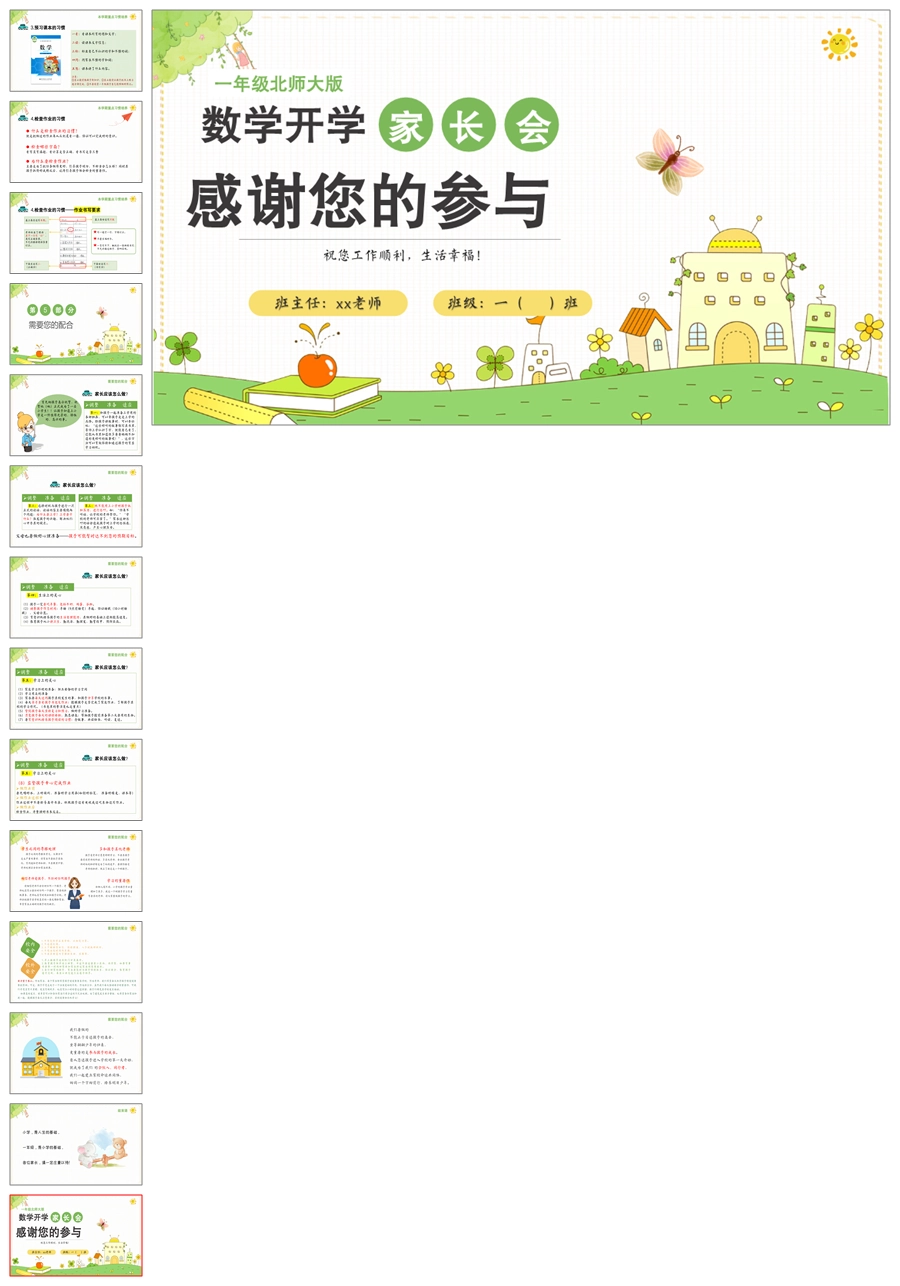 首页 一年级家长会 【5231】【一上】【数学】【迈好第一步】一年级上学期开学家长会-北师大版PPT课件+发言稿