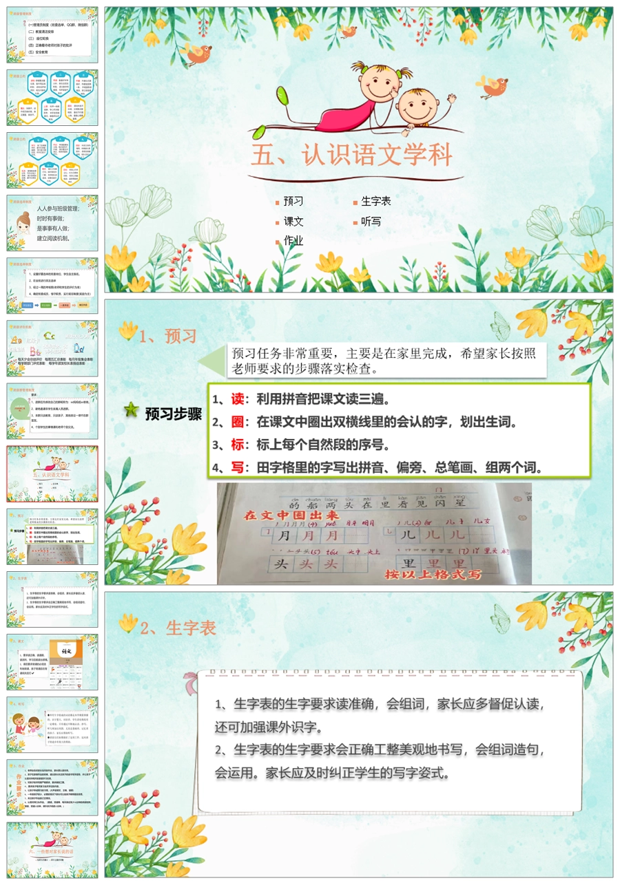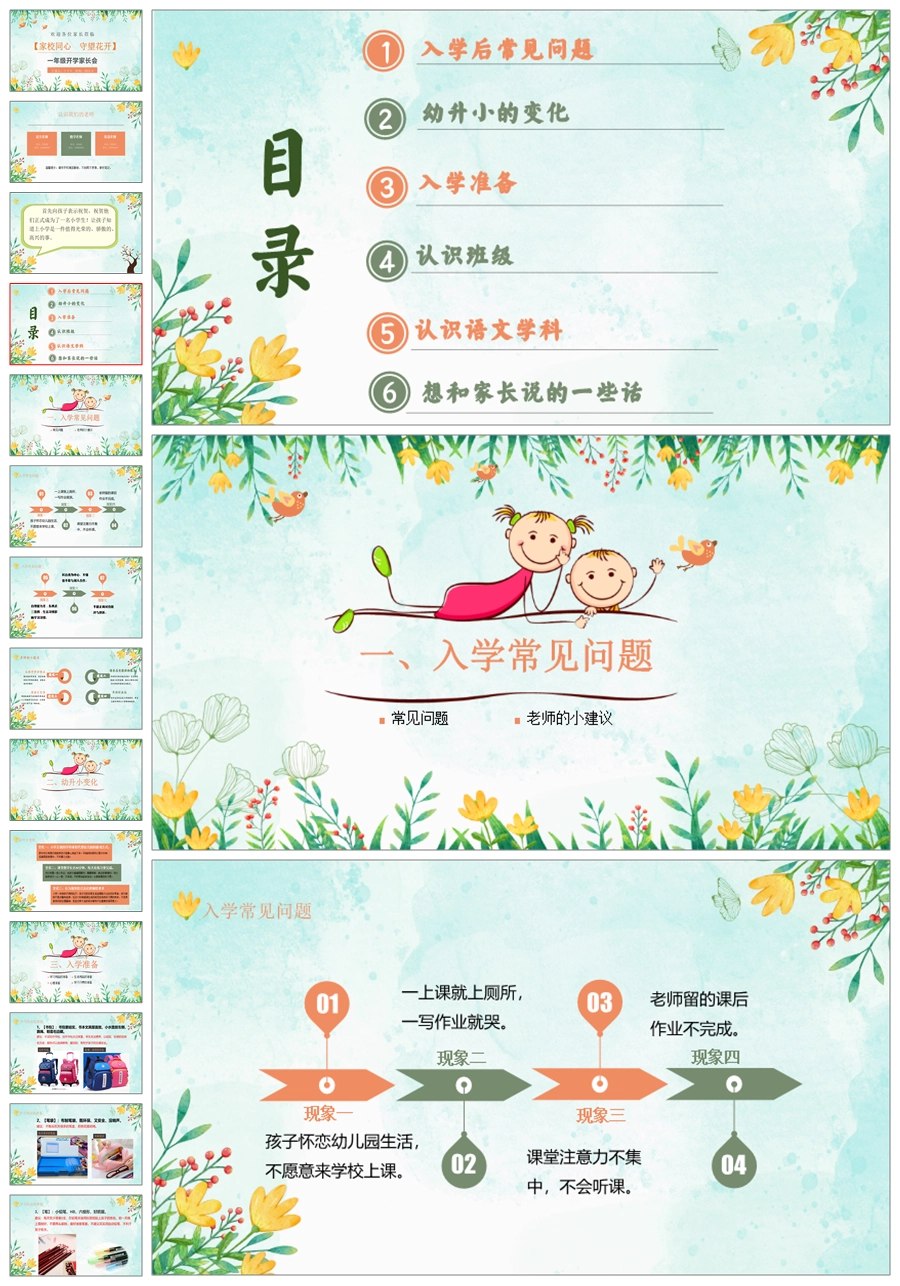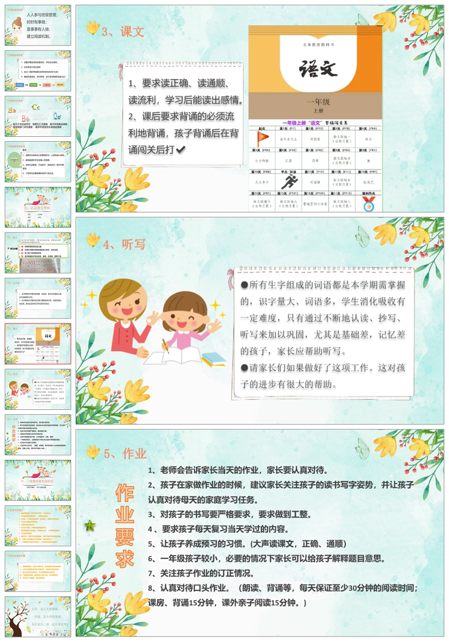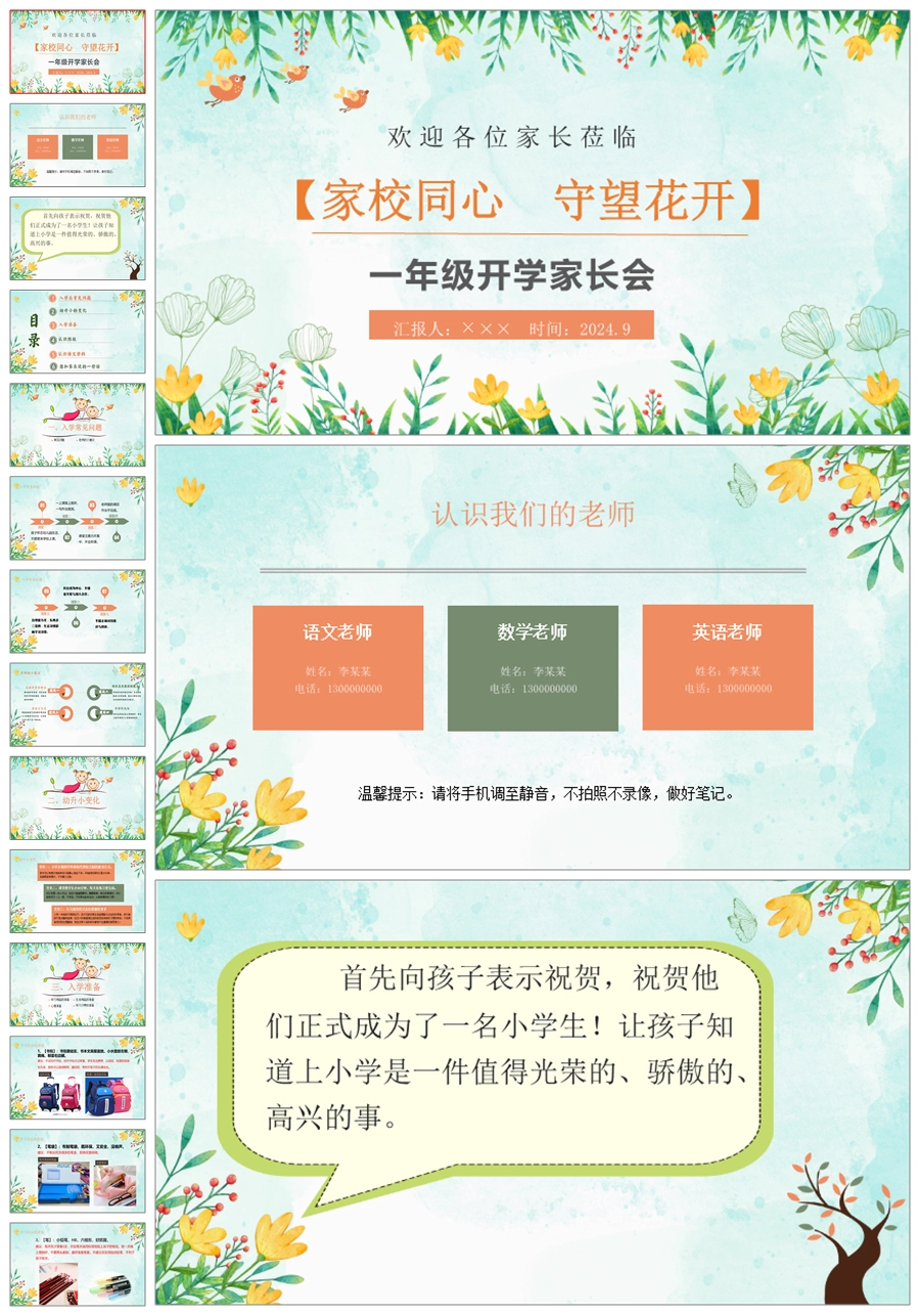 【5239】【一上】【语文】【家校同心 守望花开】一年级上学期开学家长会PPT课件+发言稿
