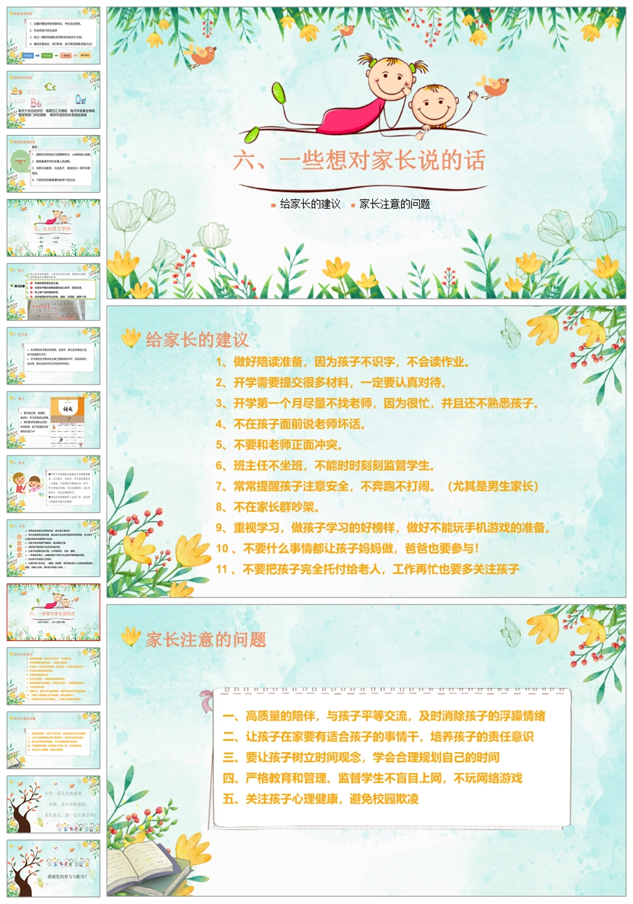 首页 一年级家长会 【5239】【一上】【语文】【家校同心 守望花开】一年级上学期开学家长会PPT课件+发言稿