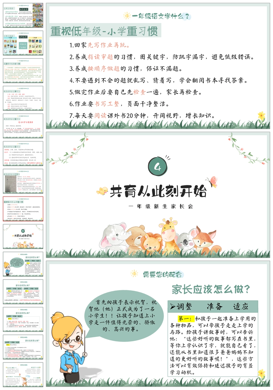 【5240】【一上】【语文】【我们的故事从此刻开始】一年级上学期开学家长会PPT课件+发言稿