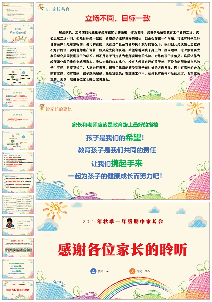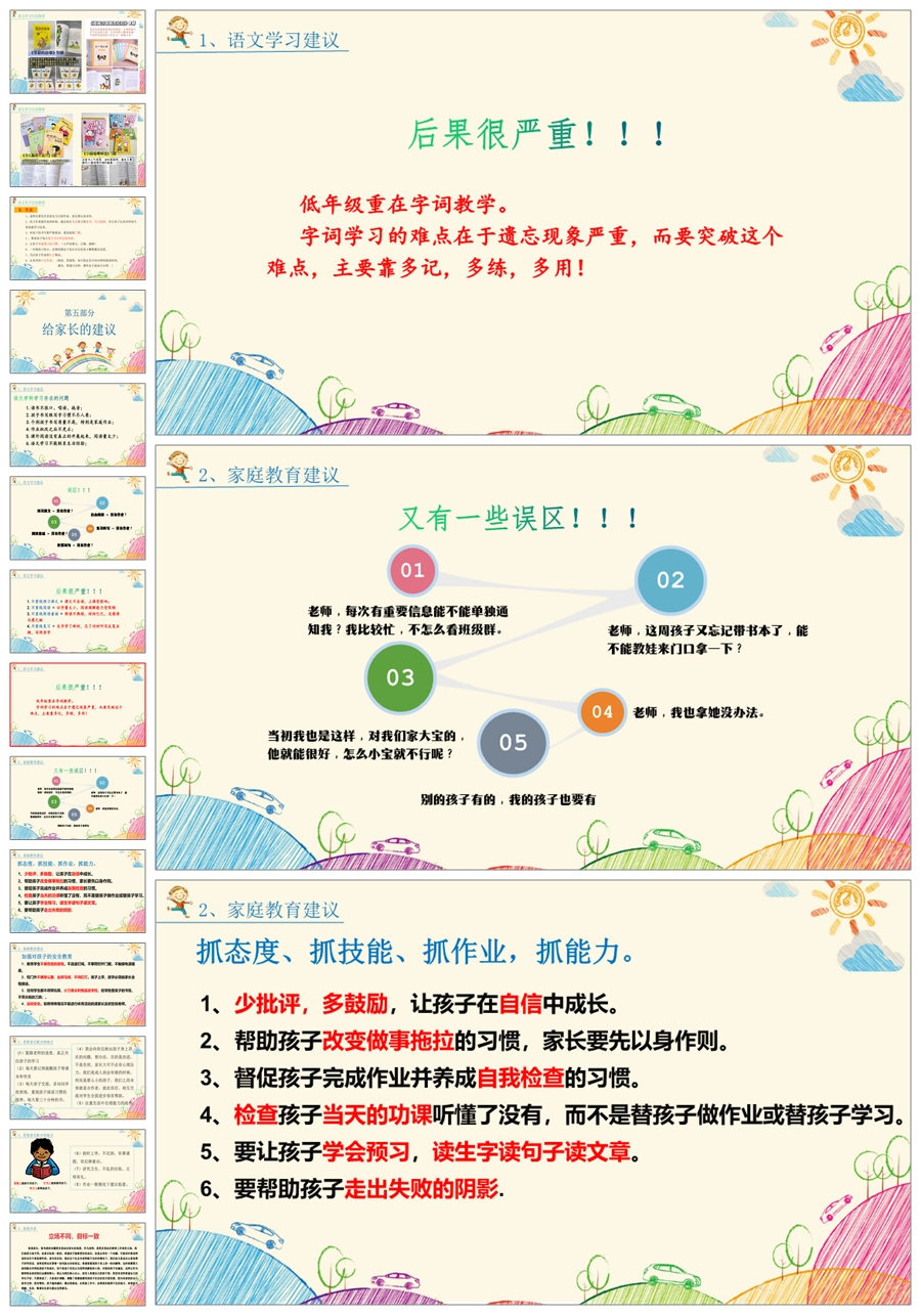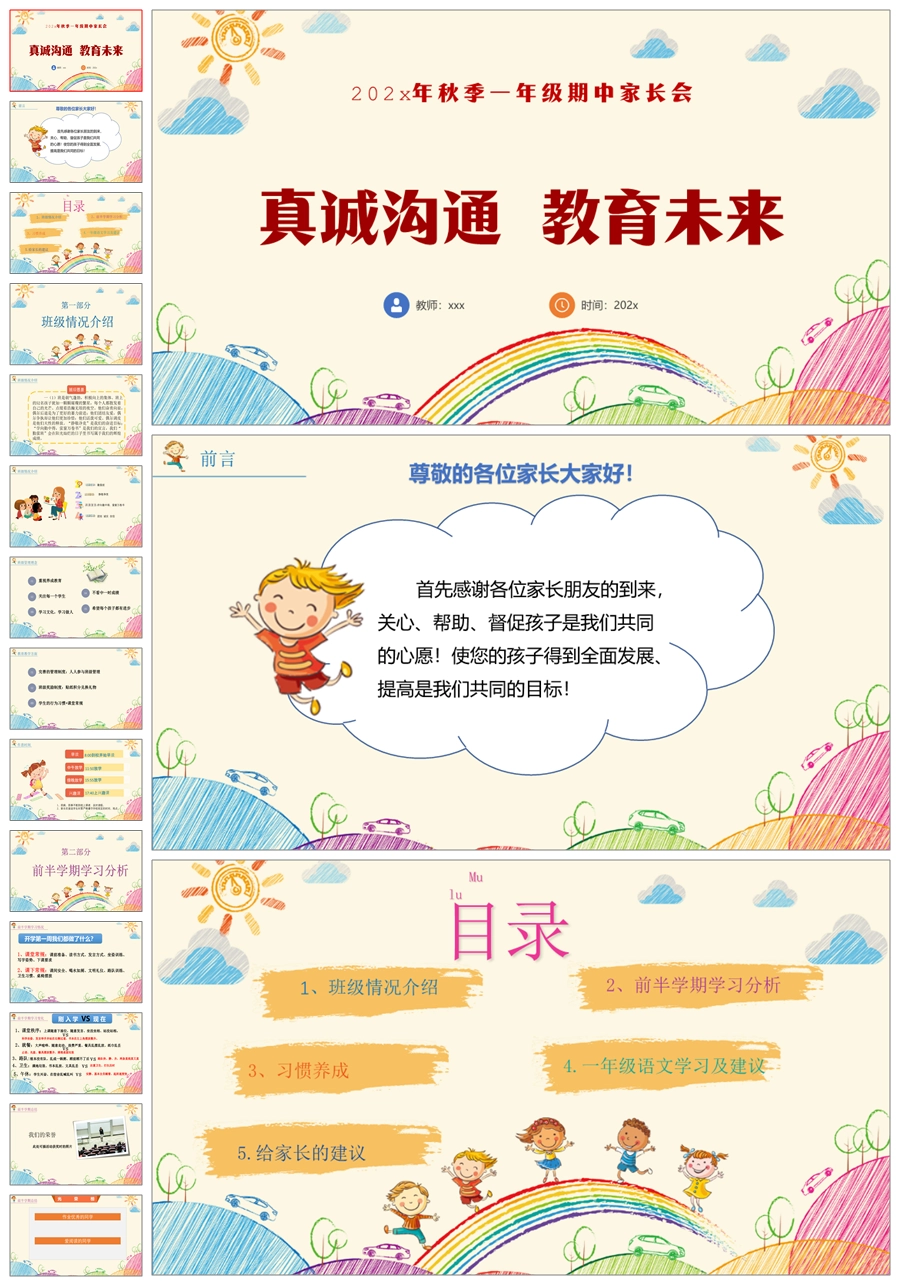 【5246】【一上】语文 【真诚沟通 教育未来】一年级上学期期中家长会PPT课件+发言稿