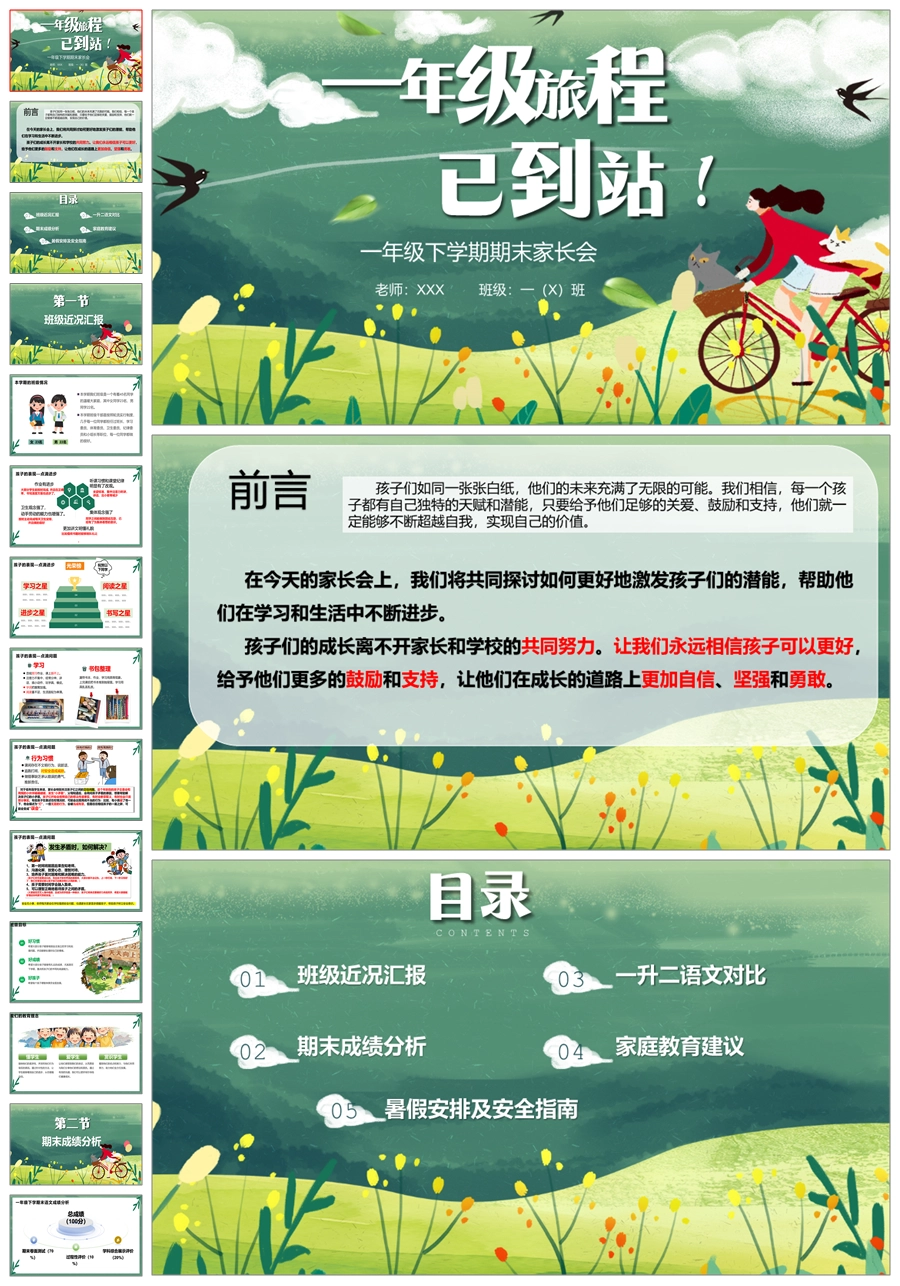 首页 一年级家长会 【5256】【一下】【语文】【一年级旅程已到站!】一年级下学期期末家长会PPT课件+发言稿