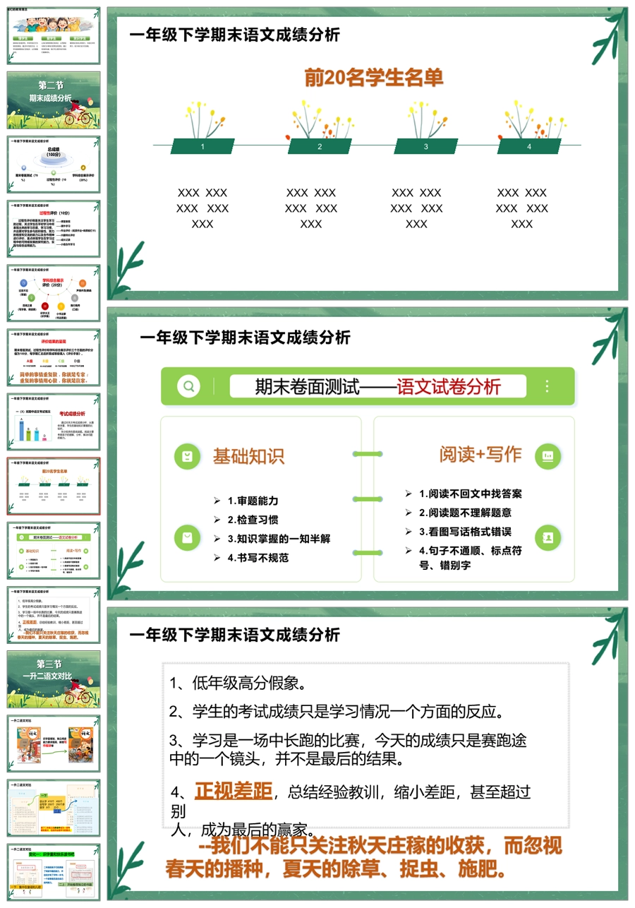 【5256】【一下】【语文】【一年级旅程已到站!】一年级下学期期末家长会PPT课件+发言稿