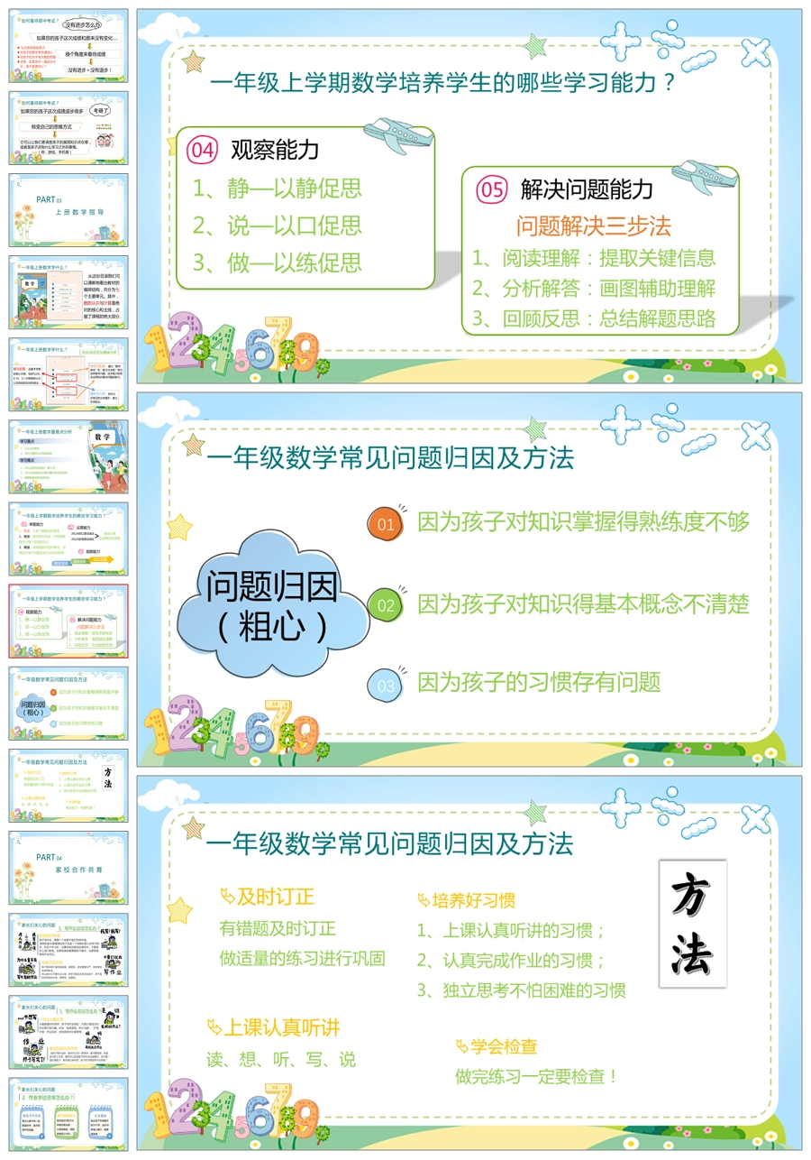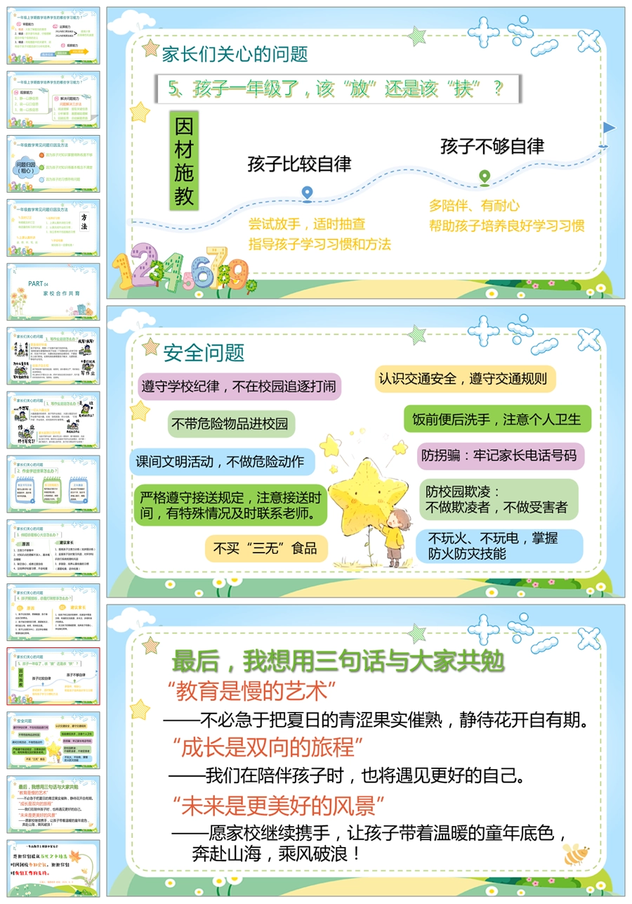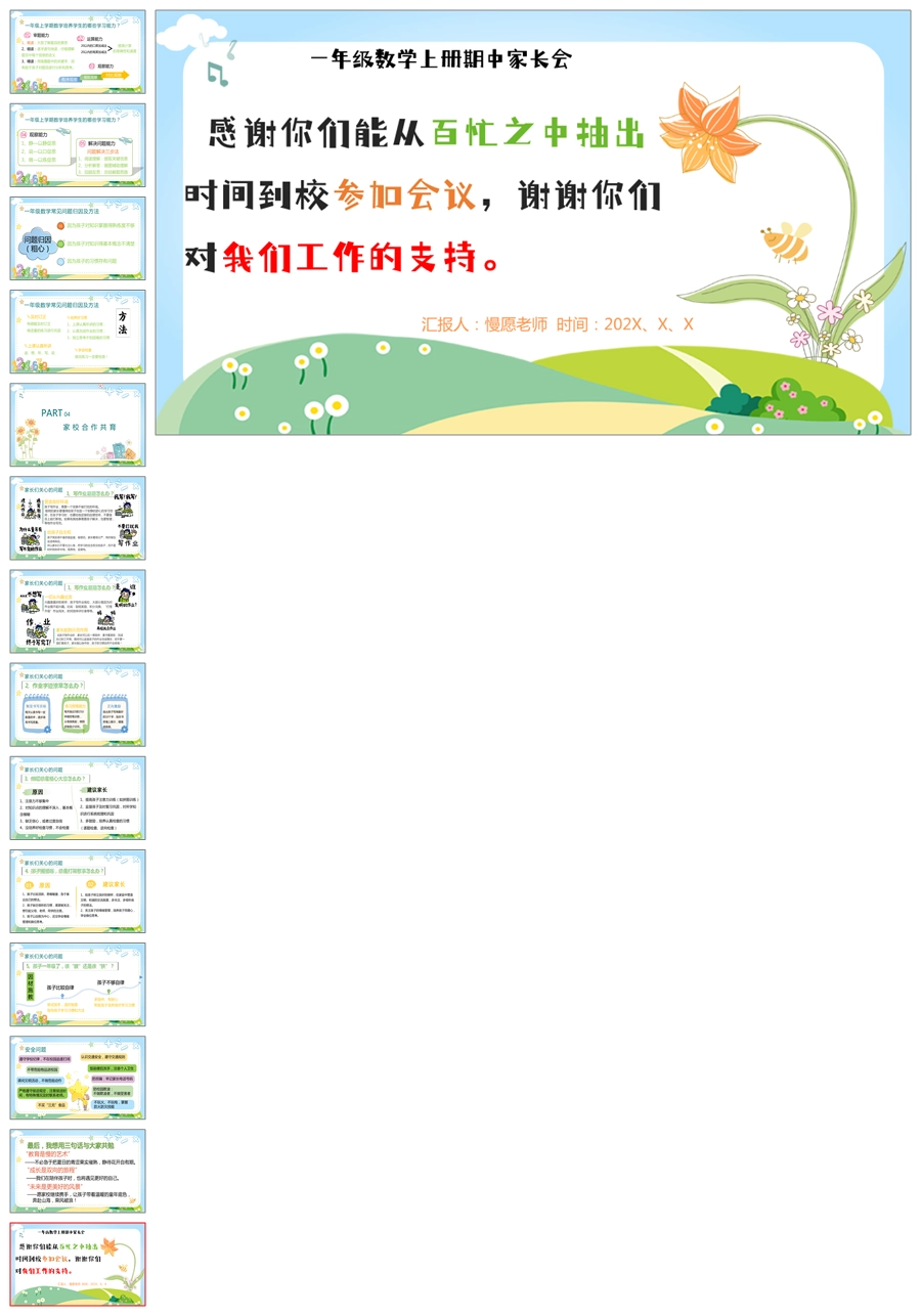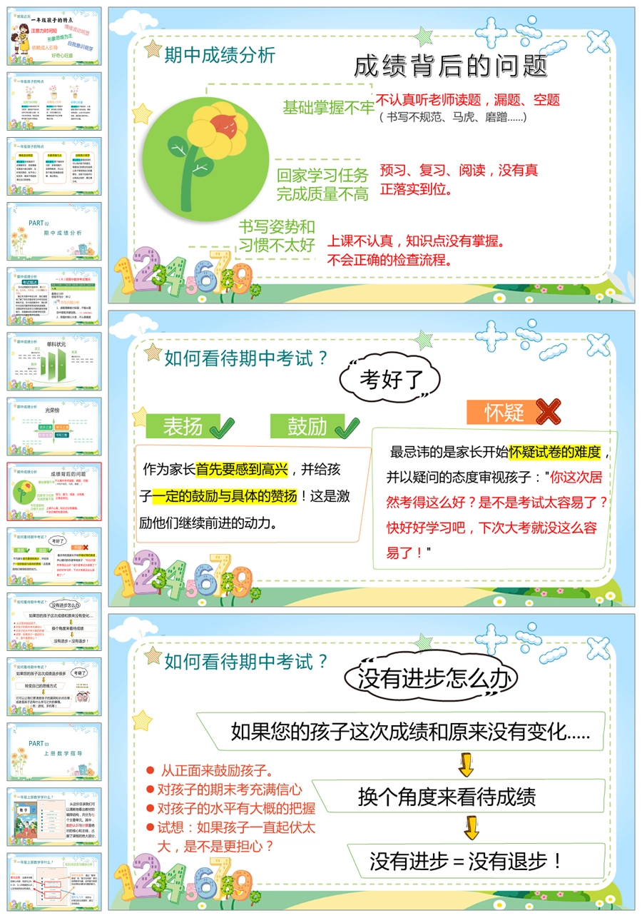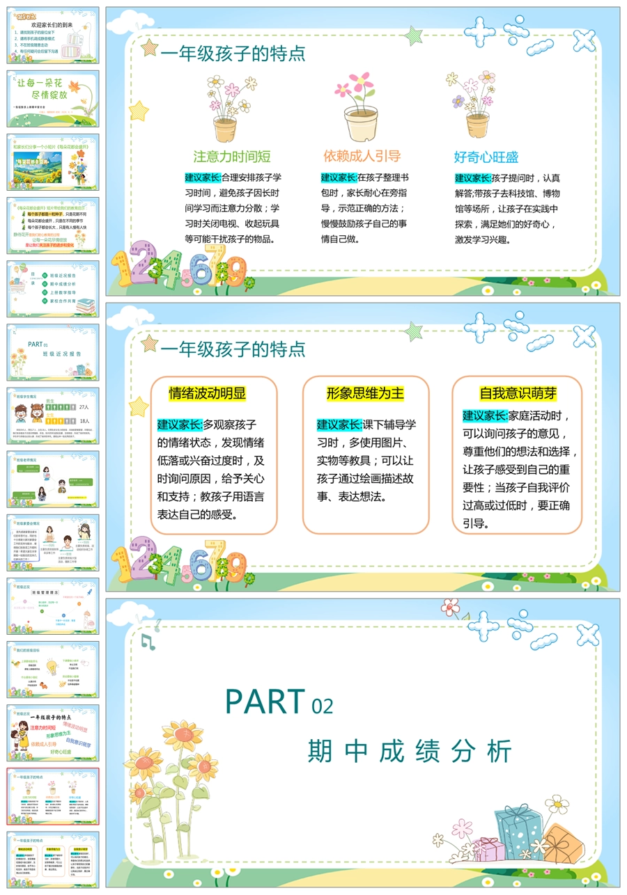 【5232】【一上】【数学】【让每一朵花尽情绽放】一年级上学期期中家长会PPT课件+发言稿