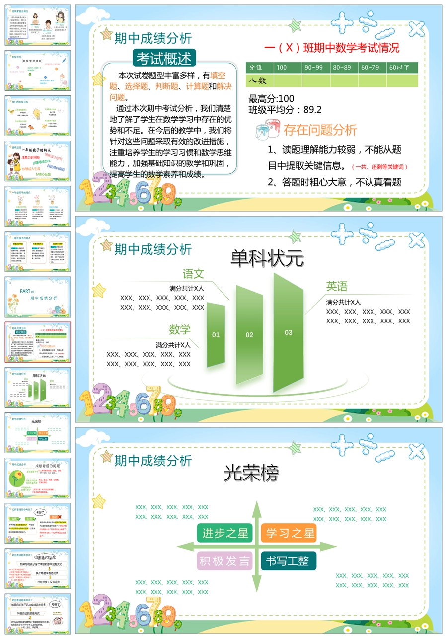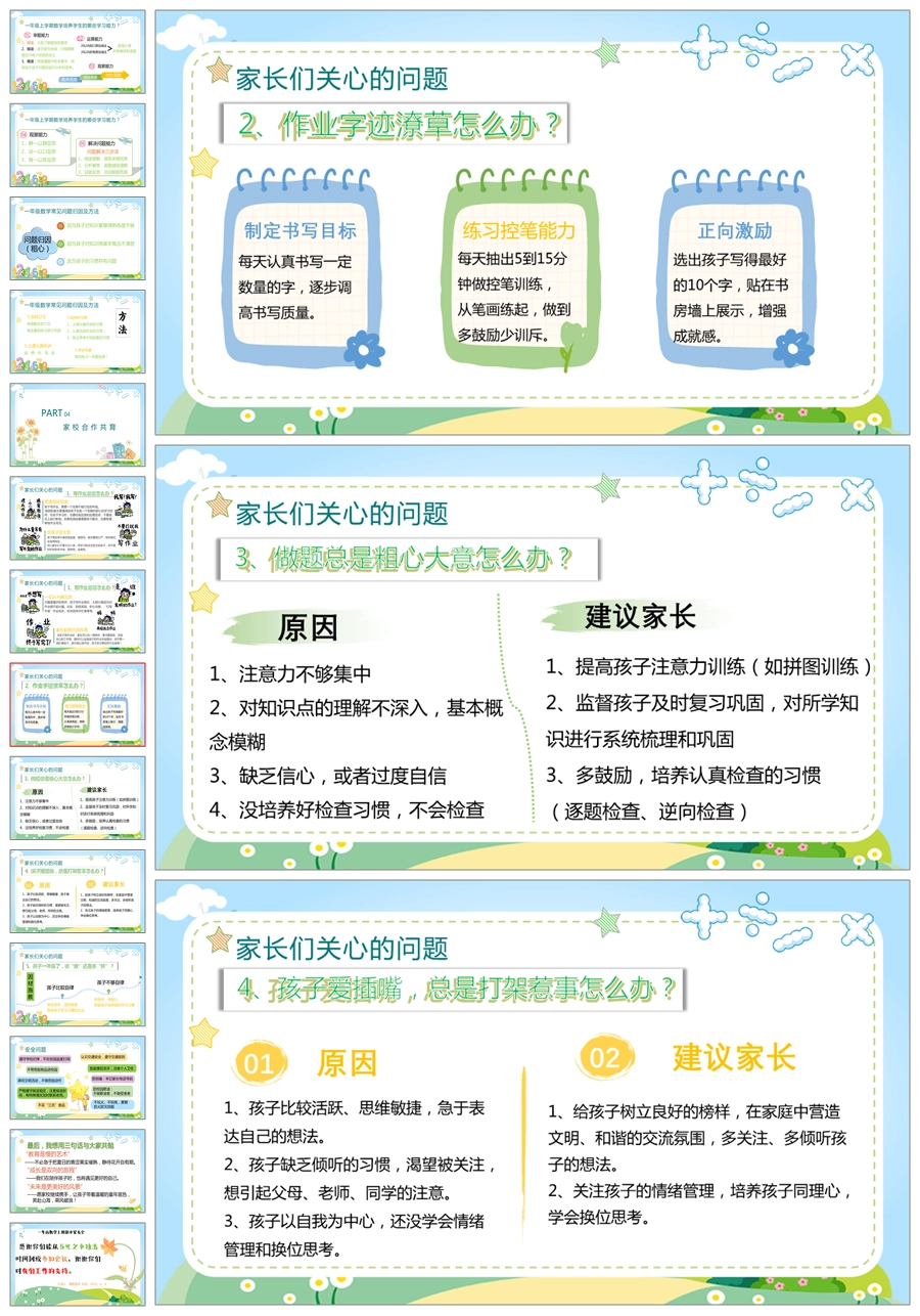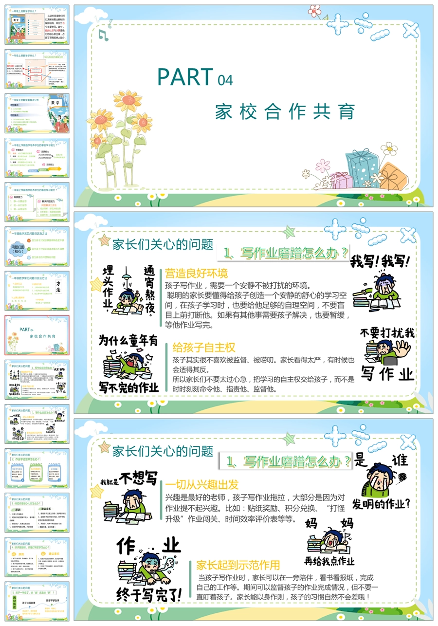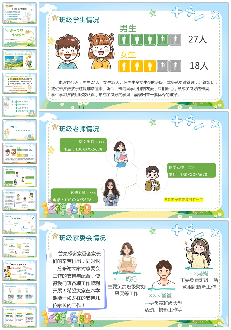 【5232】【一上】【数学】【让每一朵花尽情绽放】一年级上学期期中家长会PPT课件+发言稿