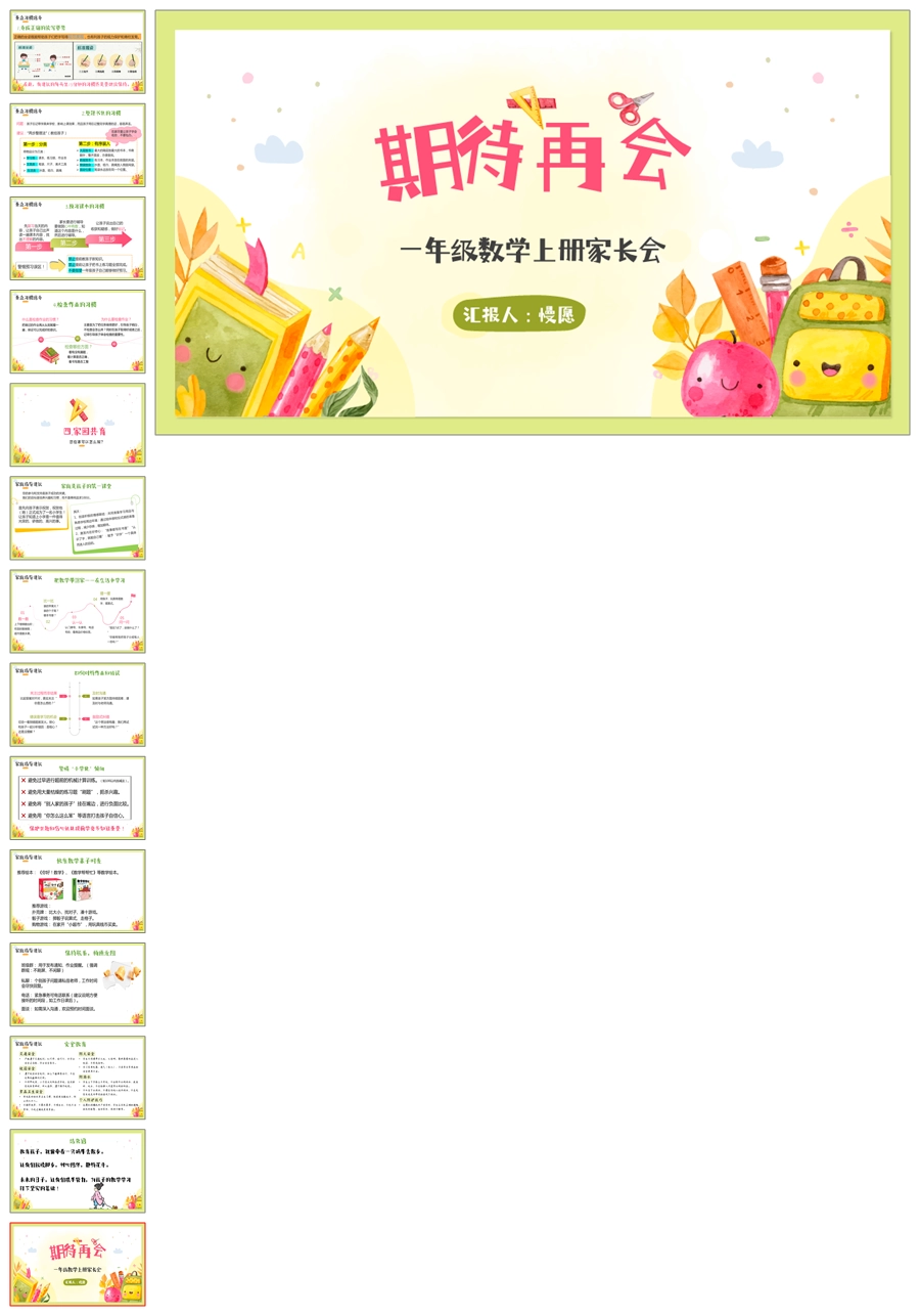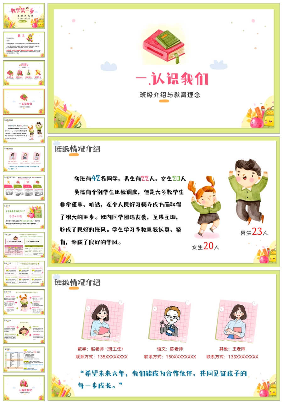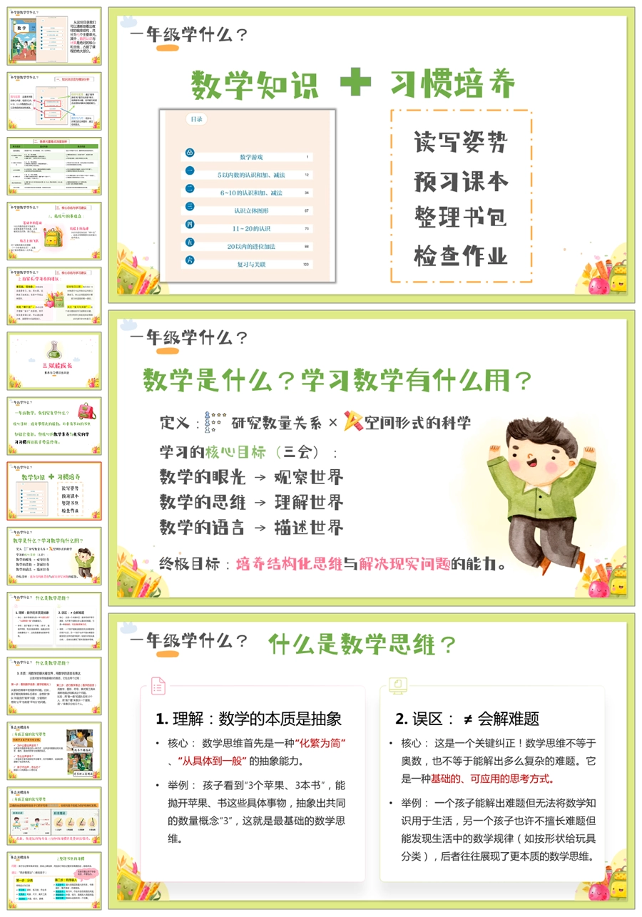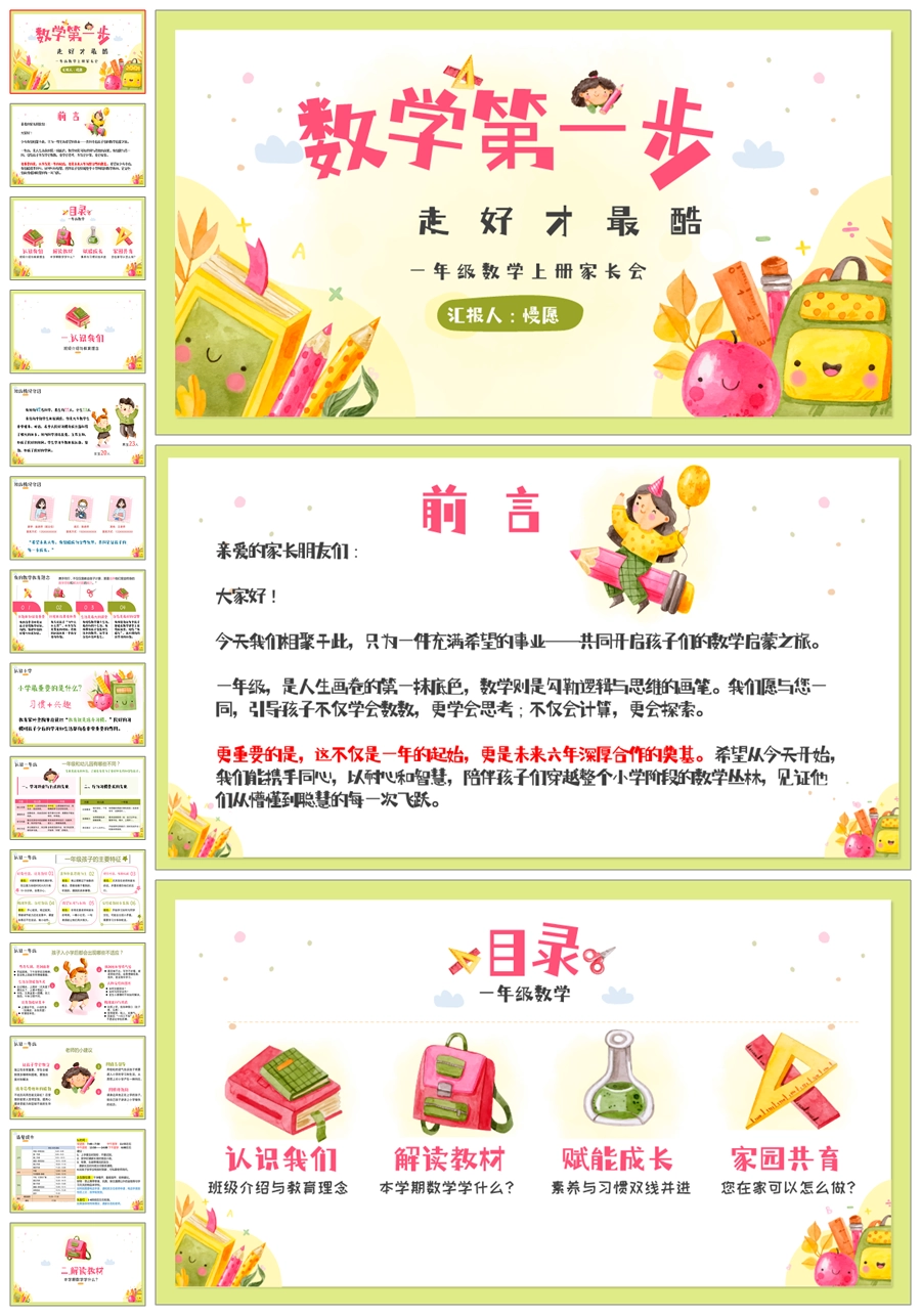 【5233】【一上】【数学】【数学第一步,走好才最酷】一年级上学期家长会PPT课件+发言稿