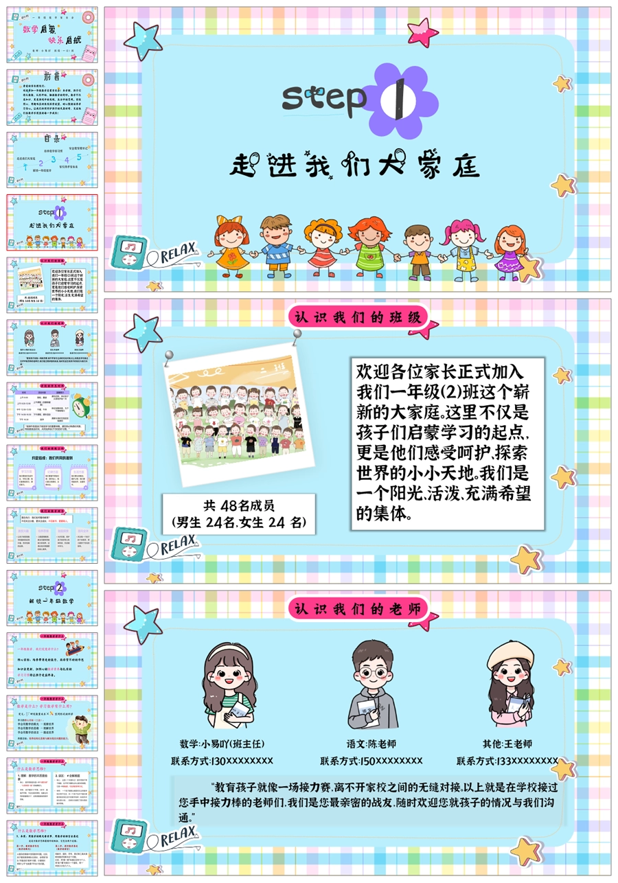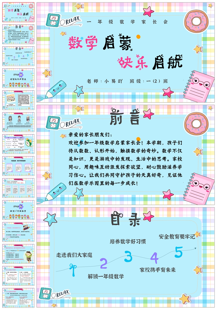 【5234】【一上】【数学】【数学启蒙,快乐启航】一年级上学期开学家长会PPT课件+发言稿