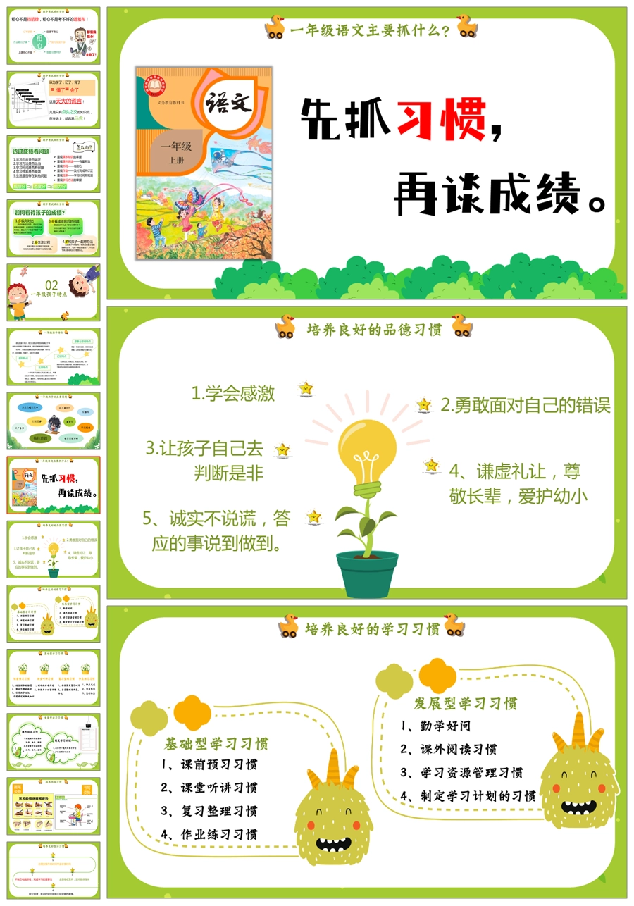 【5241】【一上】【语文】【一年级得稳稳地走】一年级上学期期中家长会PPT课件+发言稿