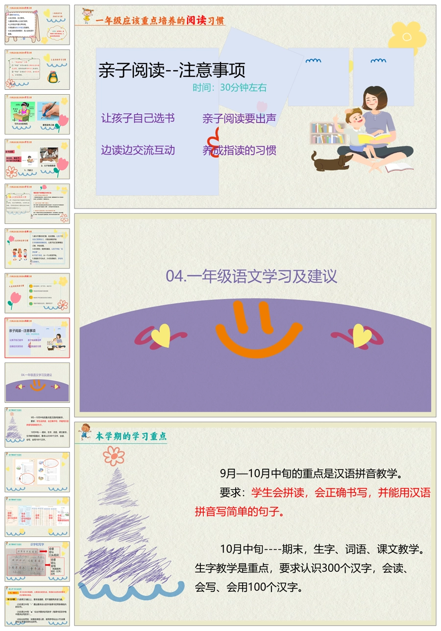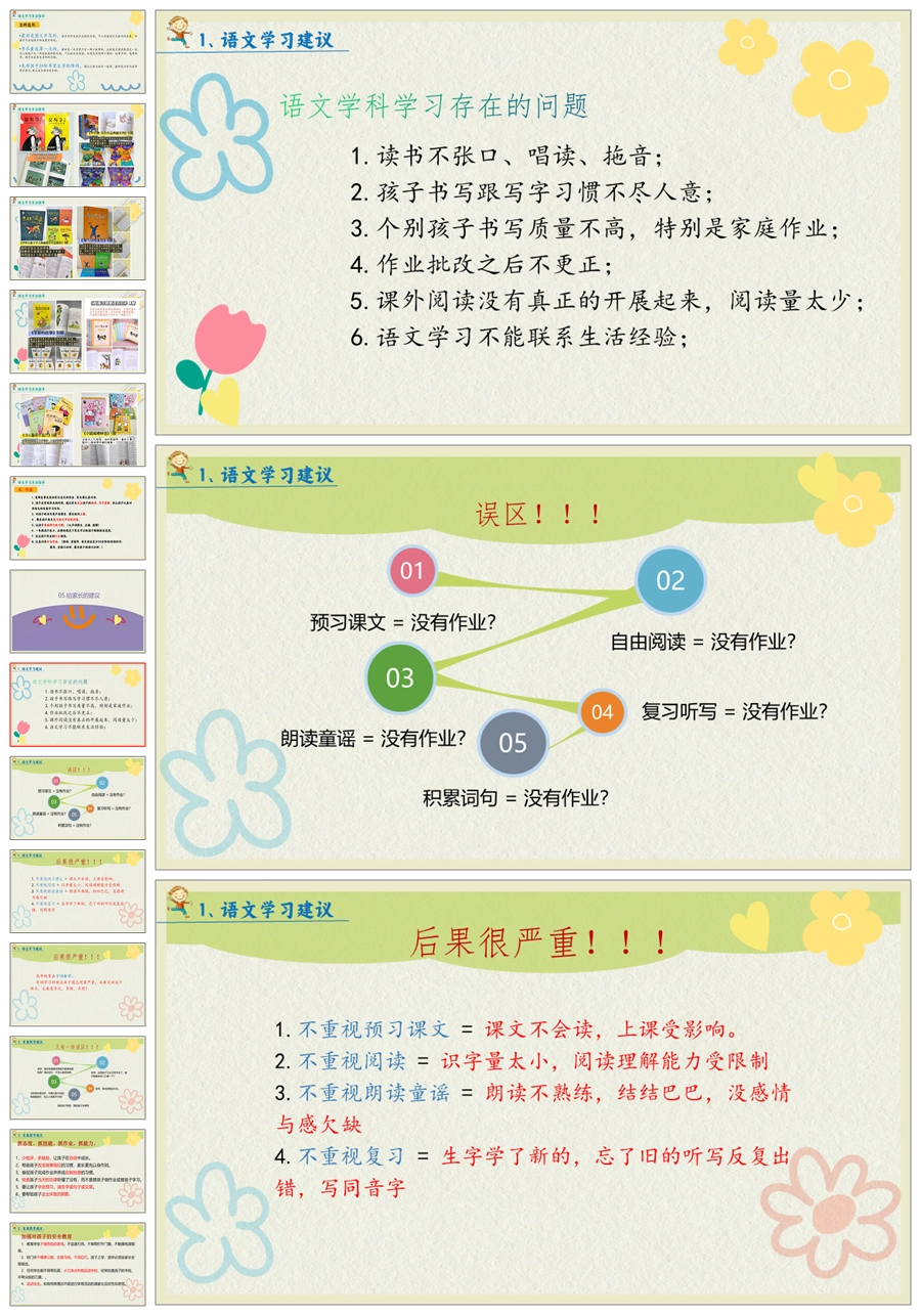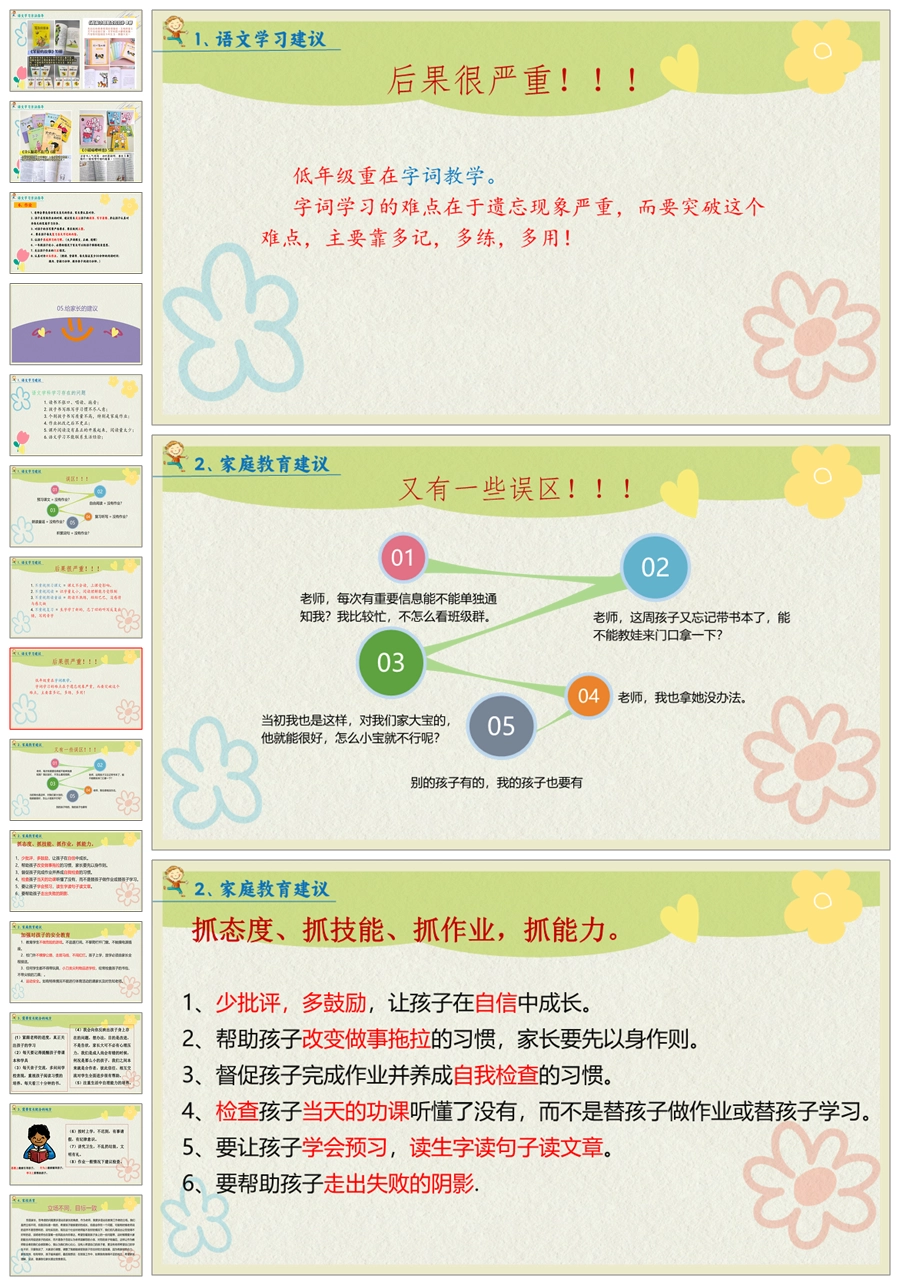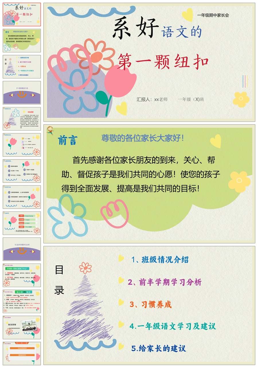【5249】【一上】语文【系好语文的第一颗纽扣】一年级上学期期中家长会PPT课件+发言稿