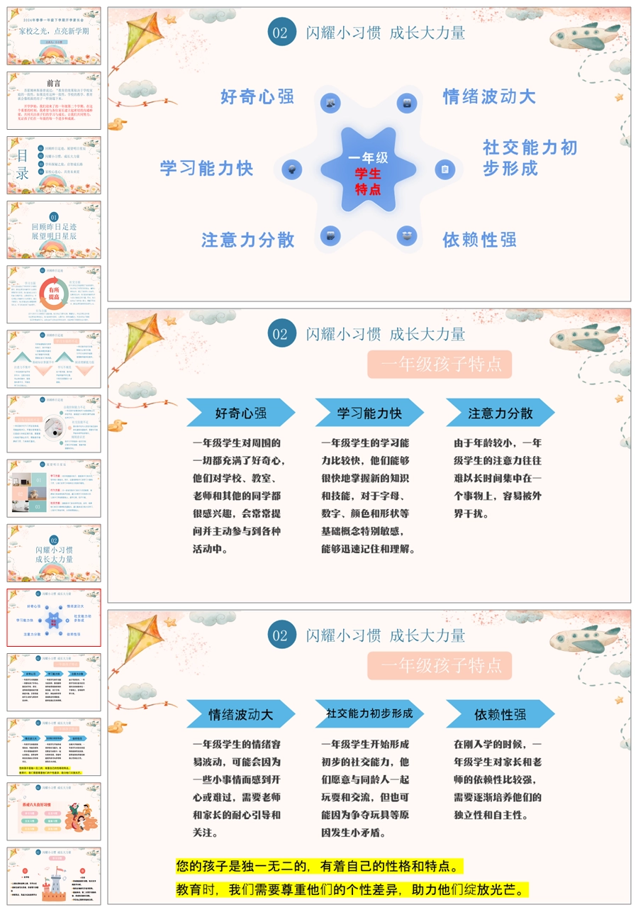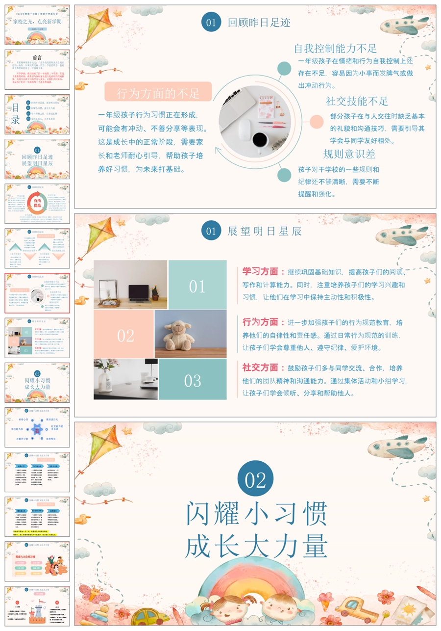 【5250】【一下】【家校之光,点亮新学期】一年级下学期开学家长会PPT课件+发言稿