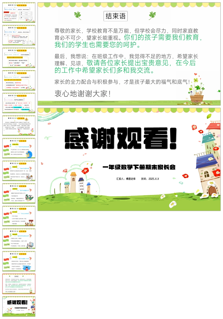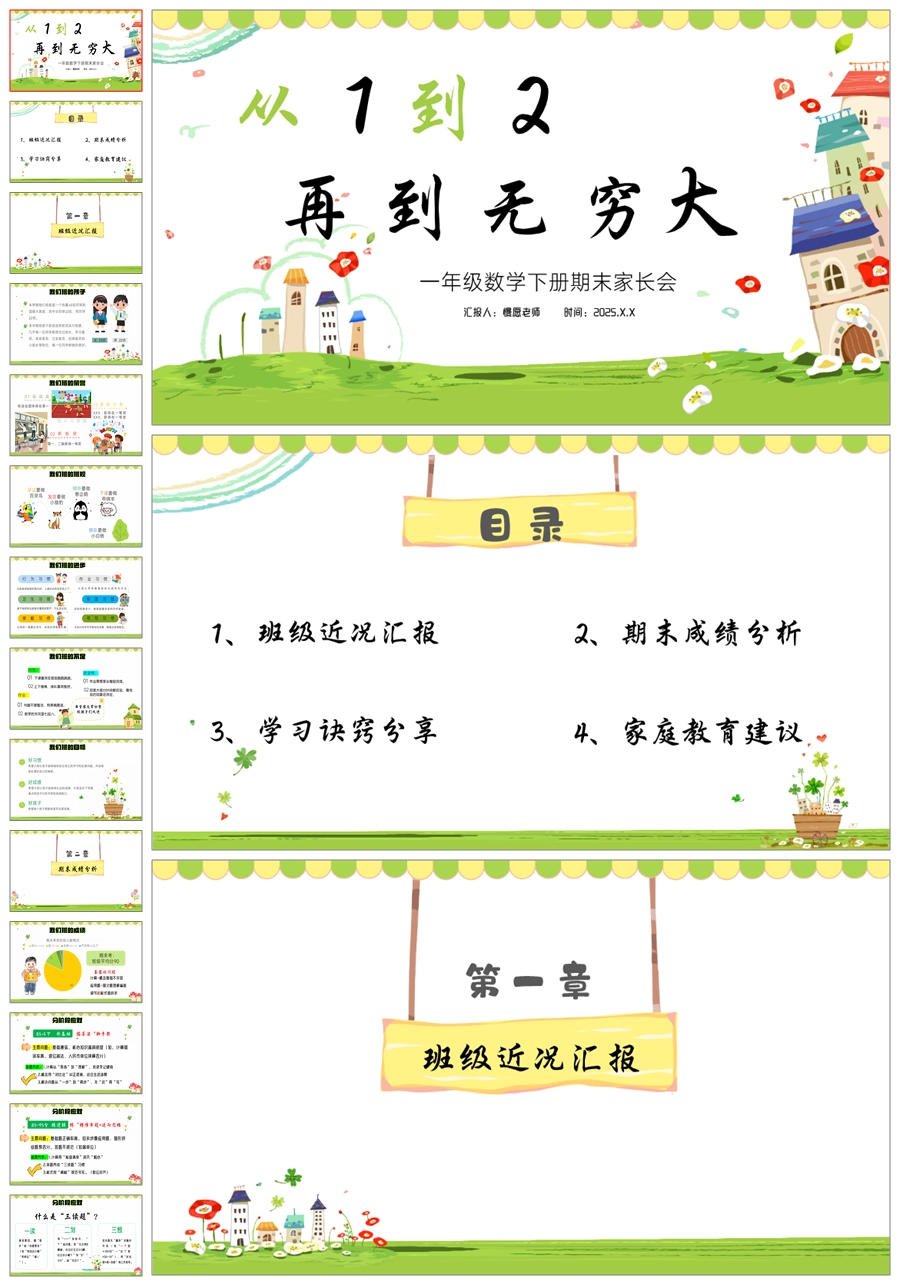 【5251】【一下】【数学】【从1到2 再到无穷大】一年级下学期期末家长会PPT课件+发言稿