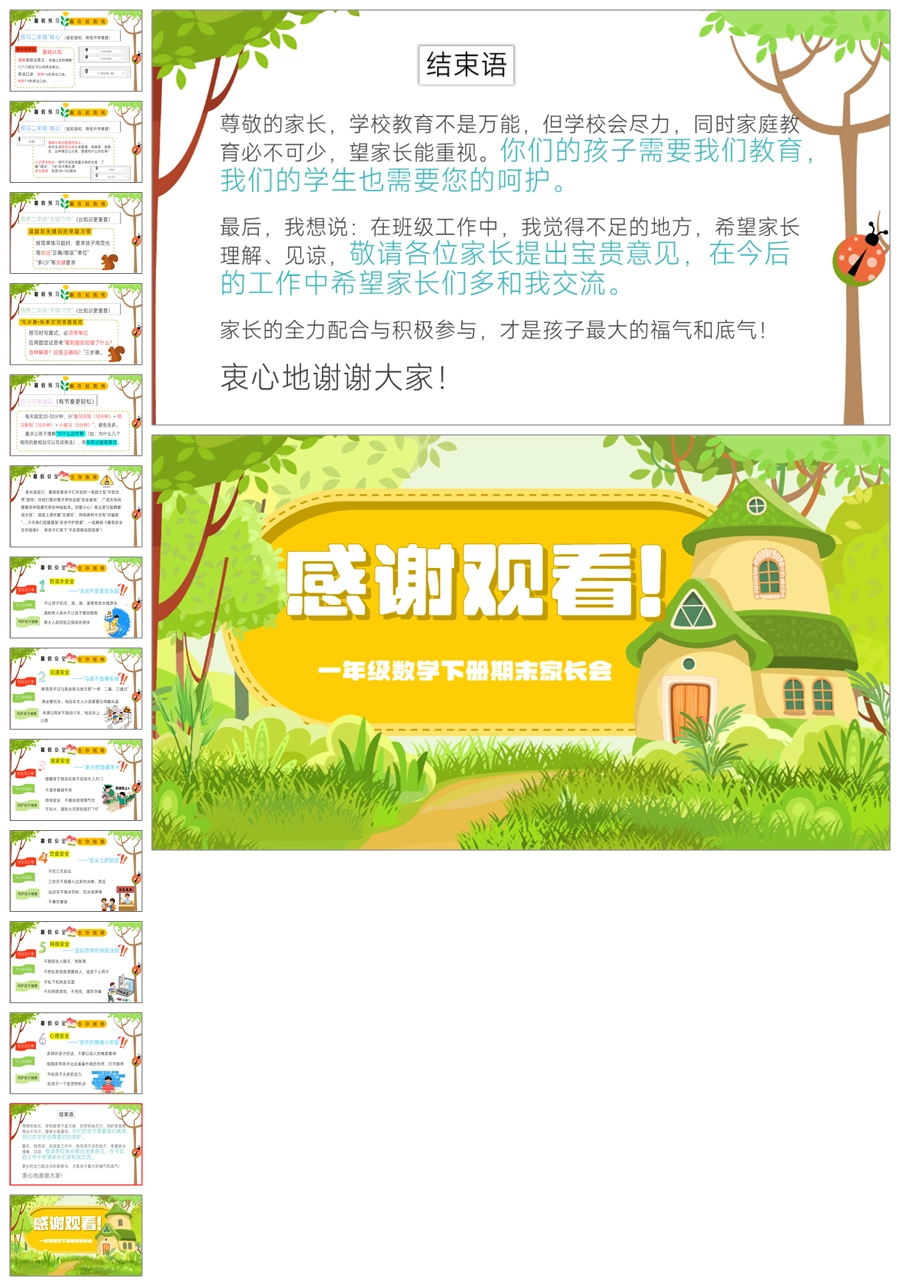 【5252】【一下】【数学】【拾一年级收获 赴二年级新程】一年级下学期期末家长会PPT课件+发言稿