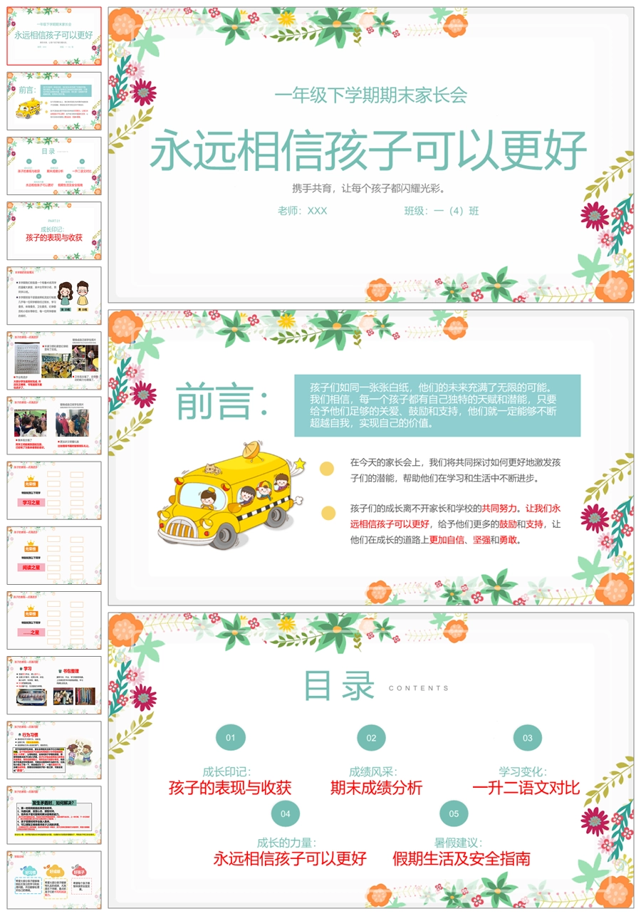 【5257】【一下】【语文】【永远相信孩子可以更好】一年级下学期期末家长会PPT课件+发言稿