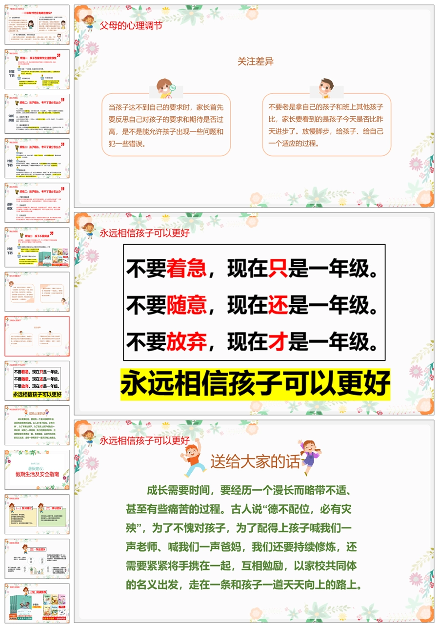 首页 一年级家长会 【5257】【一下】【语文】【永远相信孩子可以更好】一年级下学期期末家长会PPT课件+发言稿