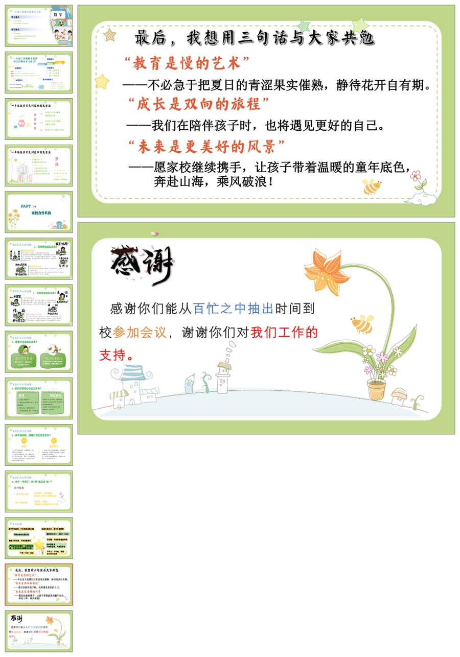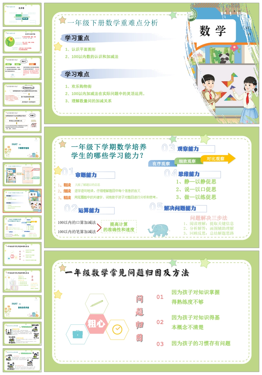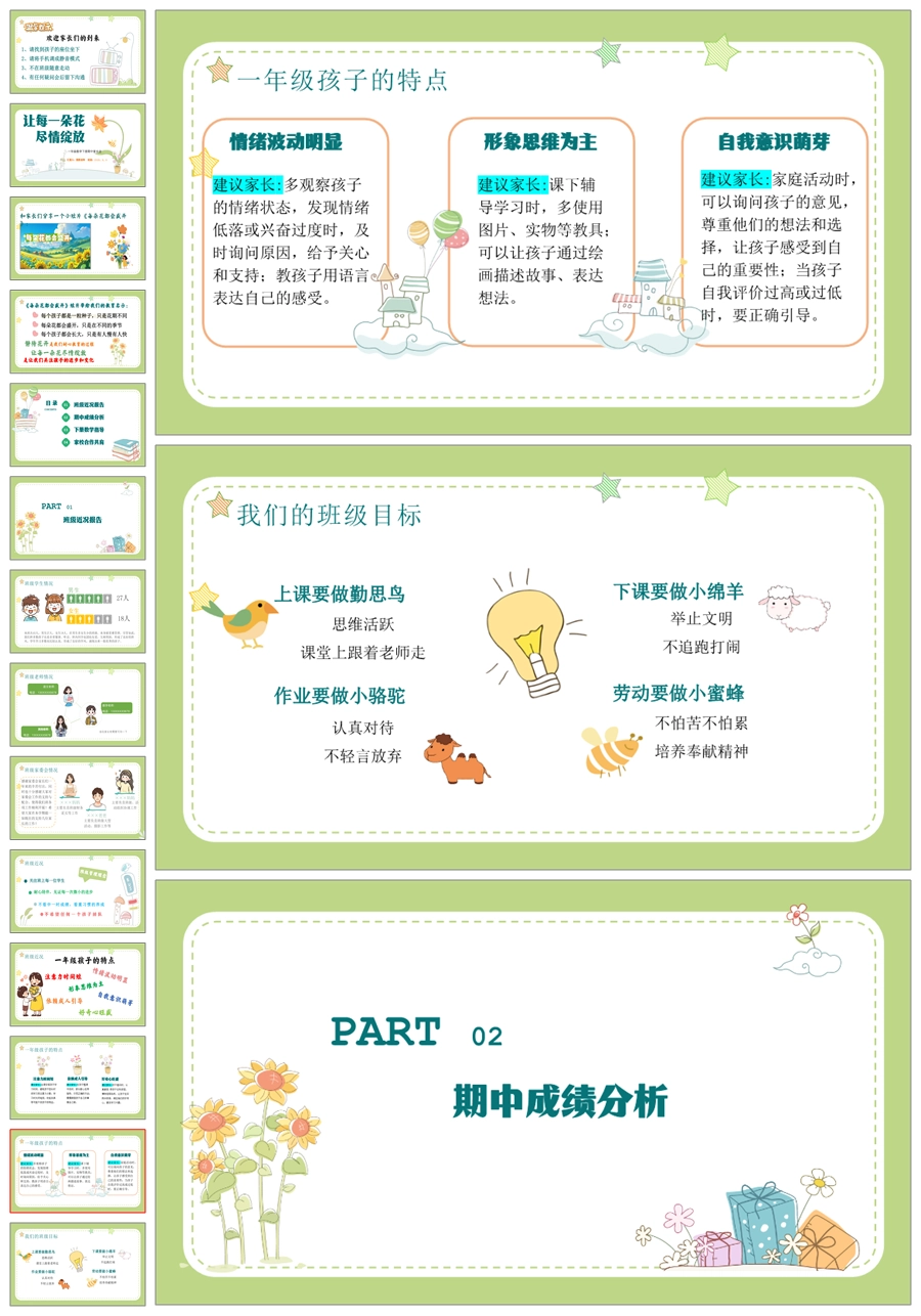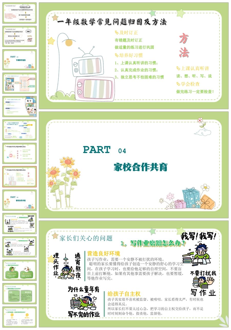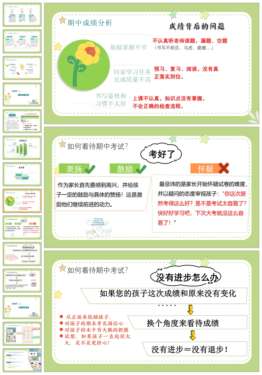 【5260】【一下】数学【让每一朵花尽情绽放】一年级下学期期中家长会PPT课件+发言稿