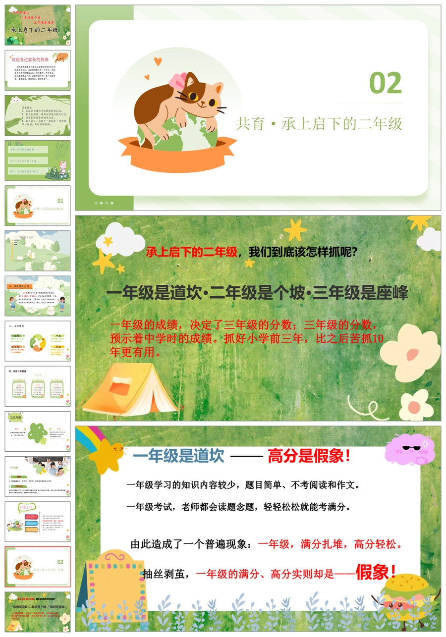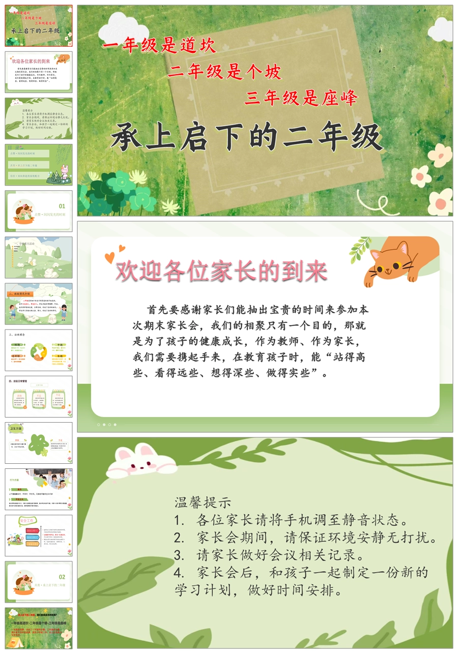 【5264】【承上启下的二年级】二年级语文期中家长会PPT课件+发言稿