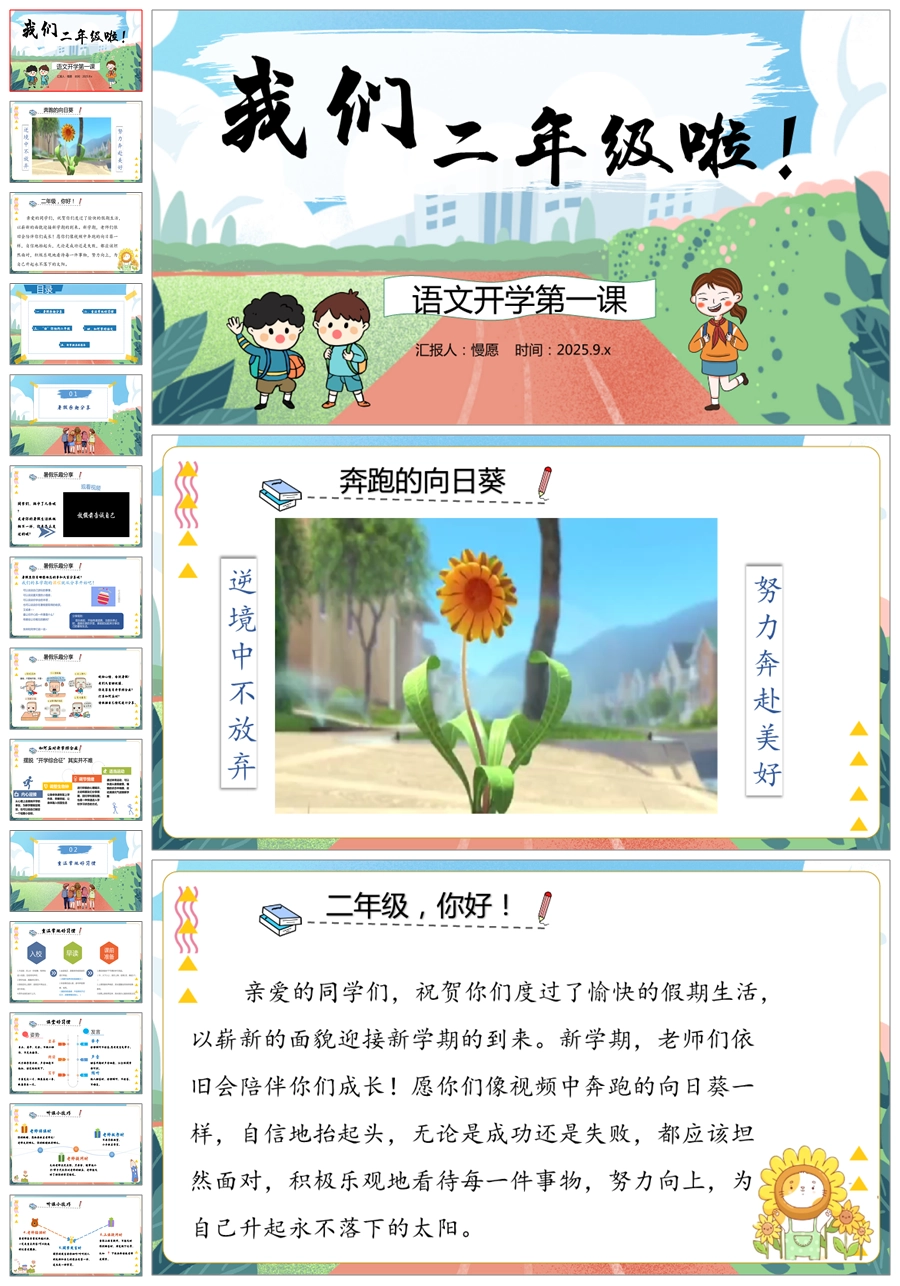 【5266】【二上】 【我们二年级啦】二年级上学期语文开学第一课PPT课件+发言稿