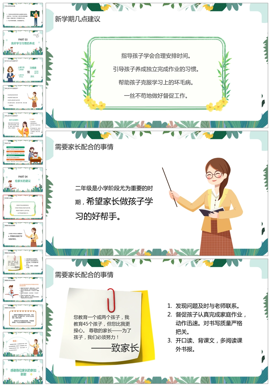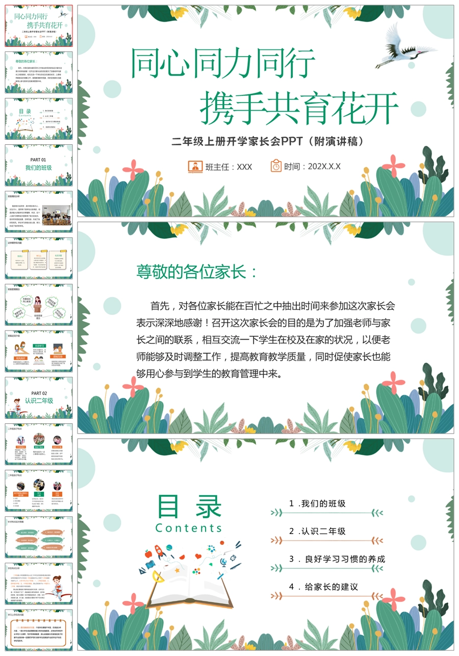 【5267】【二上】 【携手共育花开】二年级上学期开学家长会PPT课件+发言稿