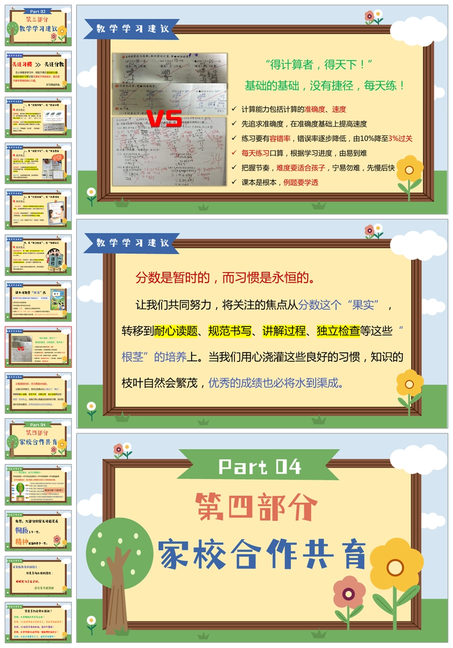 首页 二年级家长会 【5269】【二上】【数学】【让花成花 让树成树】二年级上学期期中家长会PPT课件+发言稿