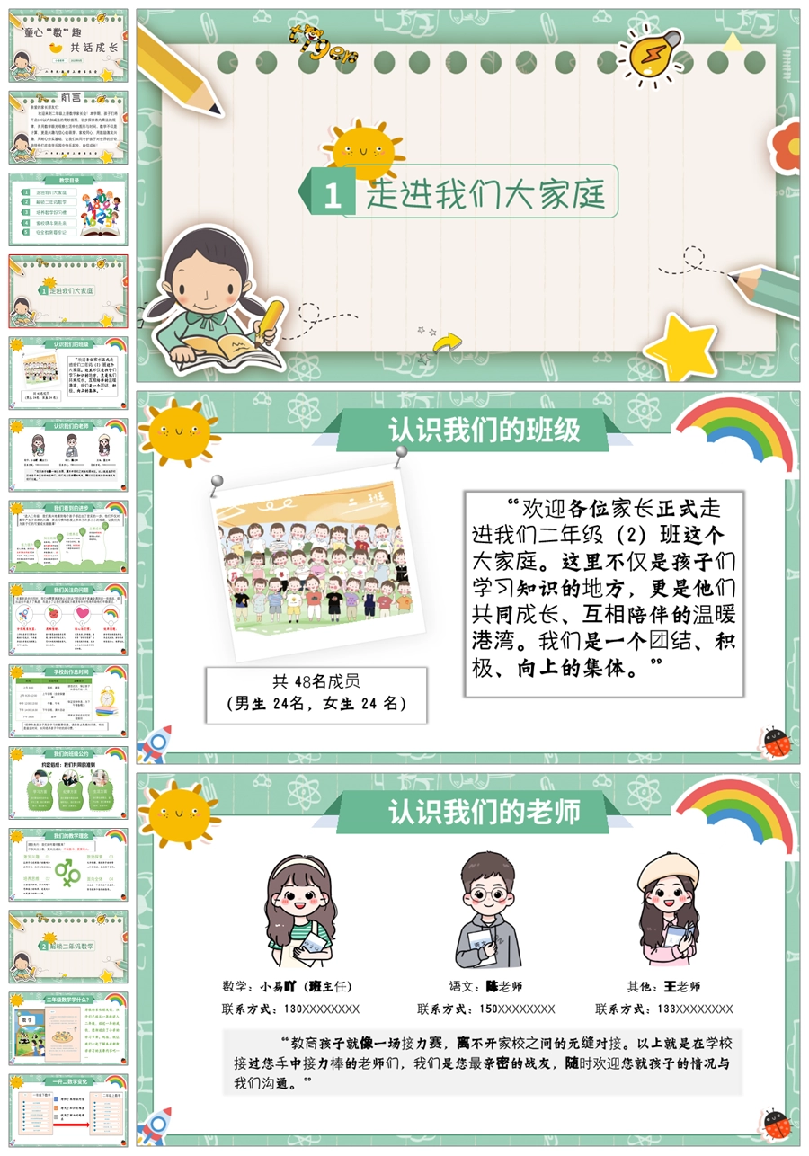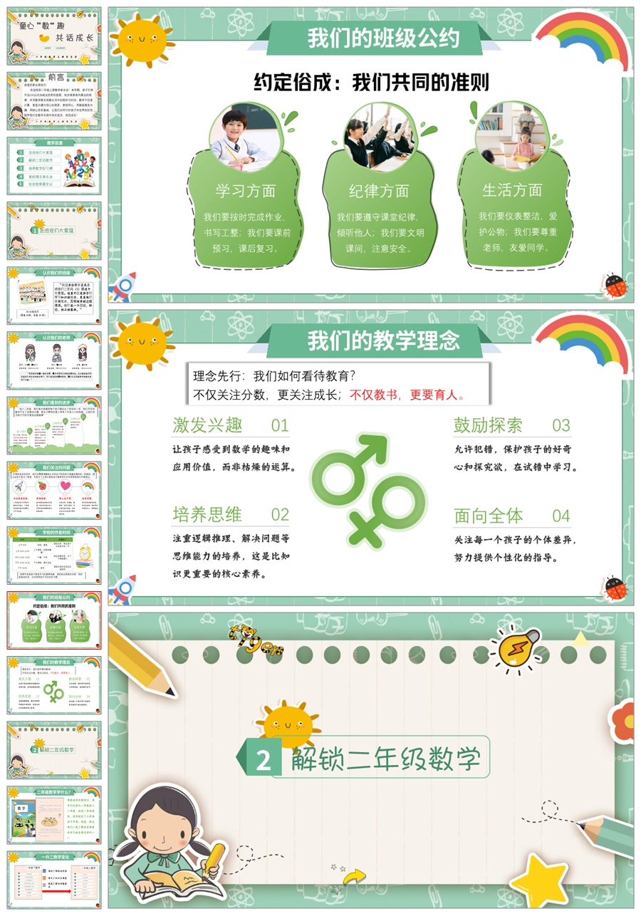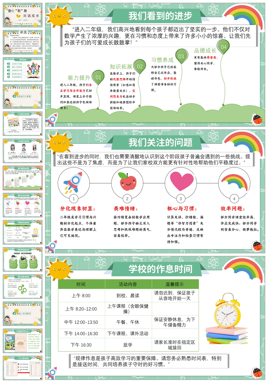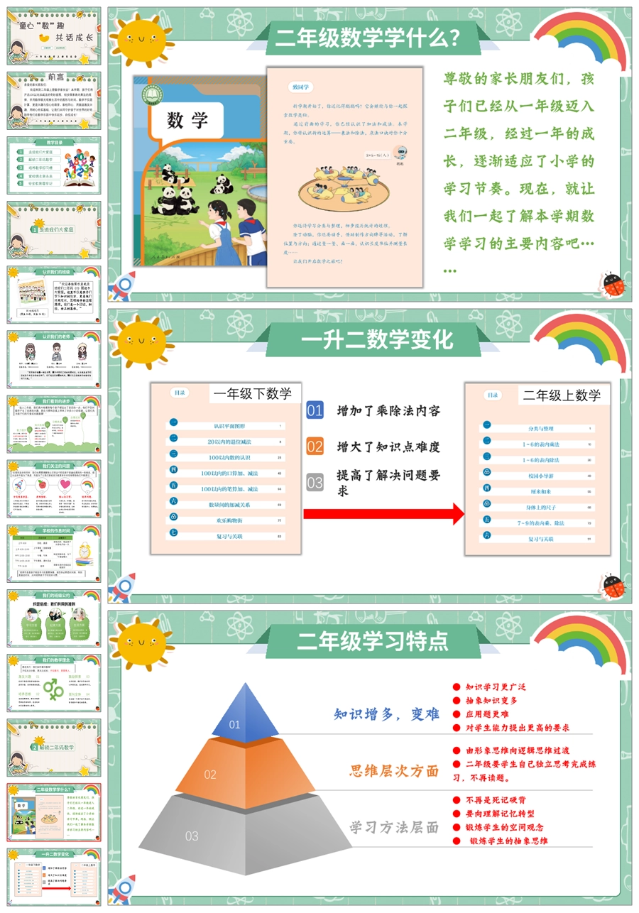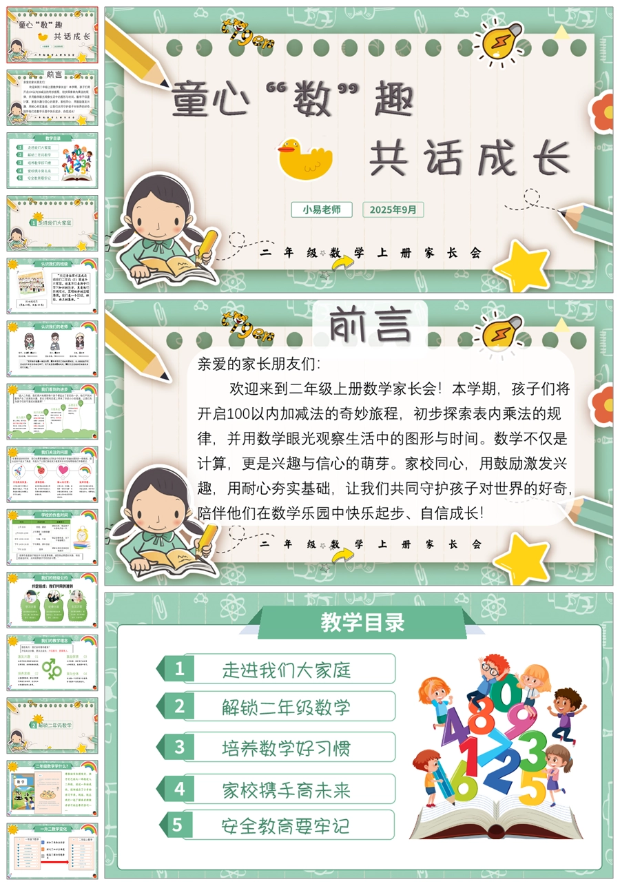 【5270】【二上】【数学】【童心“数”趣,共话成长】二年级上学期开学家长会PPT课件+发言稿