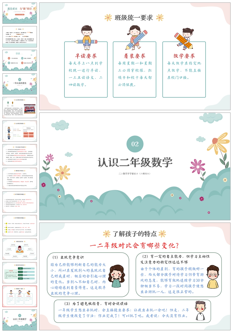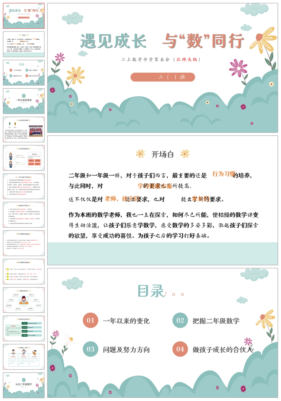 首页 二年级家长会 【5273】【二上】【数学】【遇见成长 与“数”同行】二年级上学期开学家长会-北师大版PPT课件+发言稿