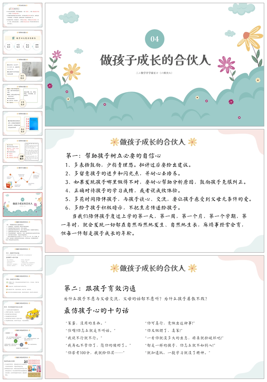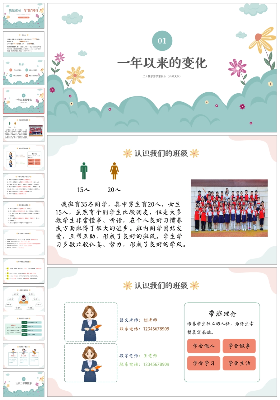 【5273】【二上】【数学】【遇见成长 与“数”同行】二年级上学期开学家长会-北师大版PPT课件+发言稿