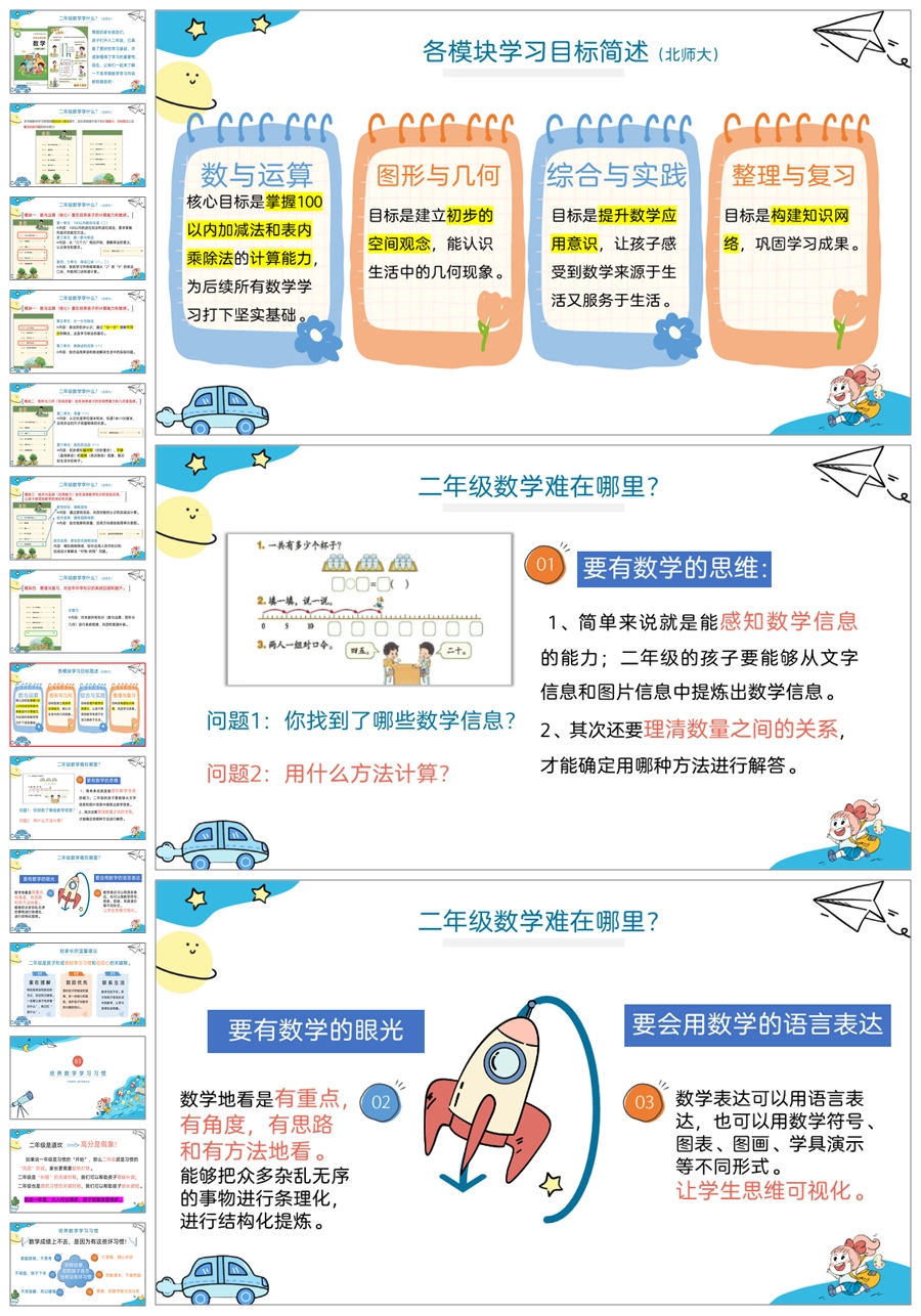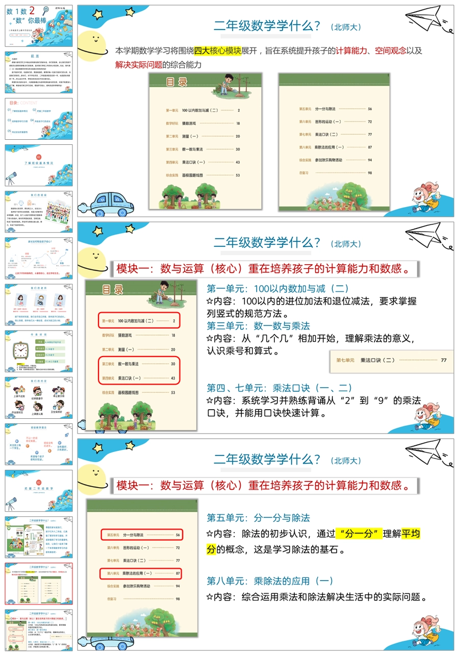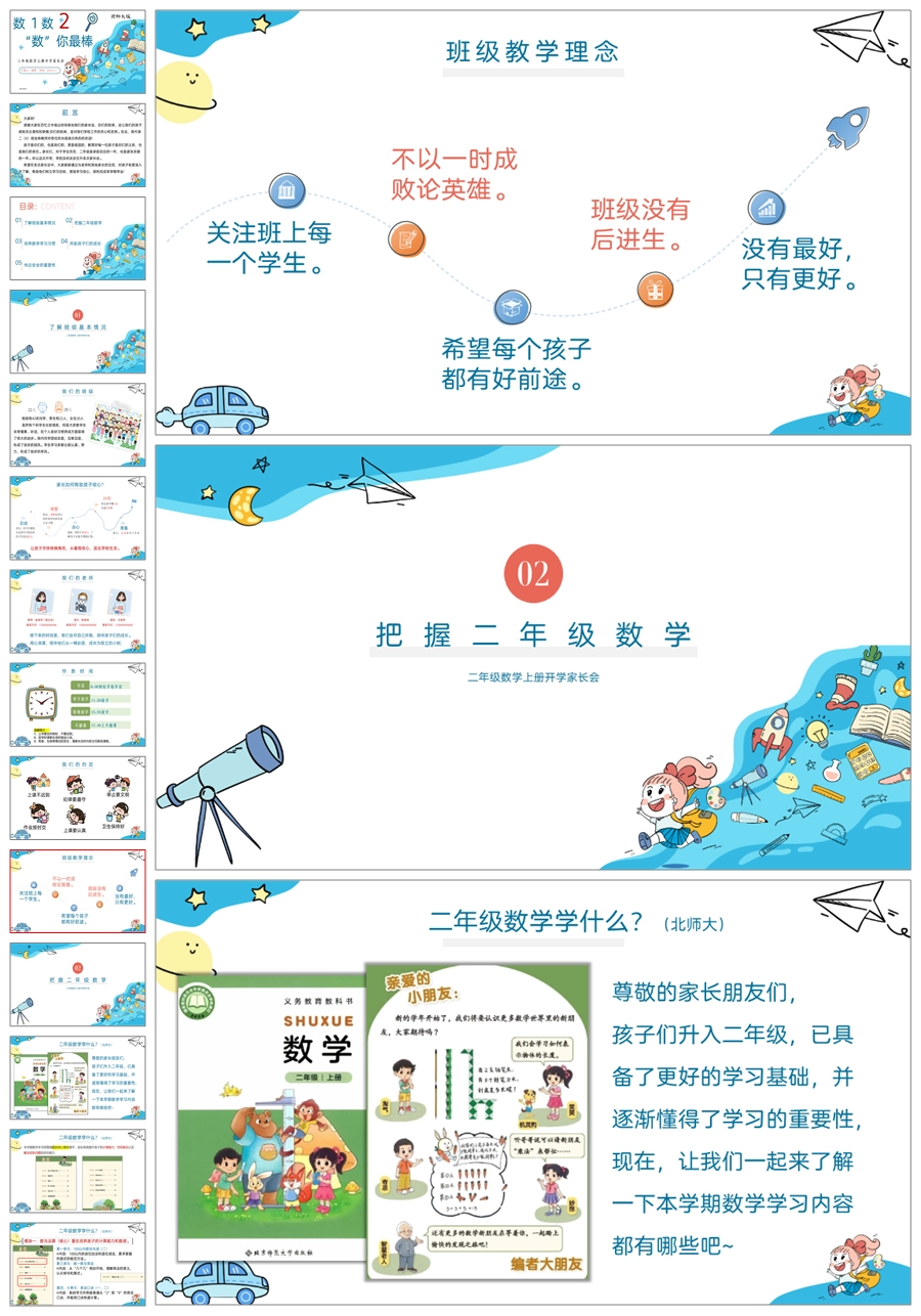 【5275】【二上】数学【数1数2 数你最棒】二年级上学期开学家长会-北师大PPT课件+发言稿