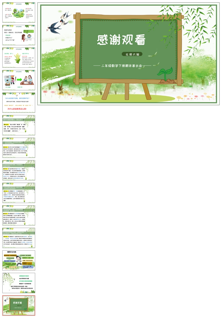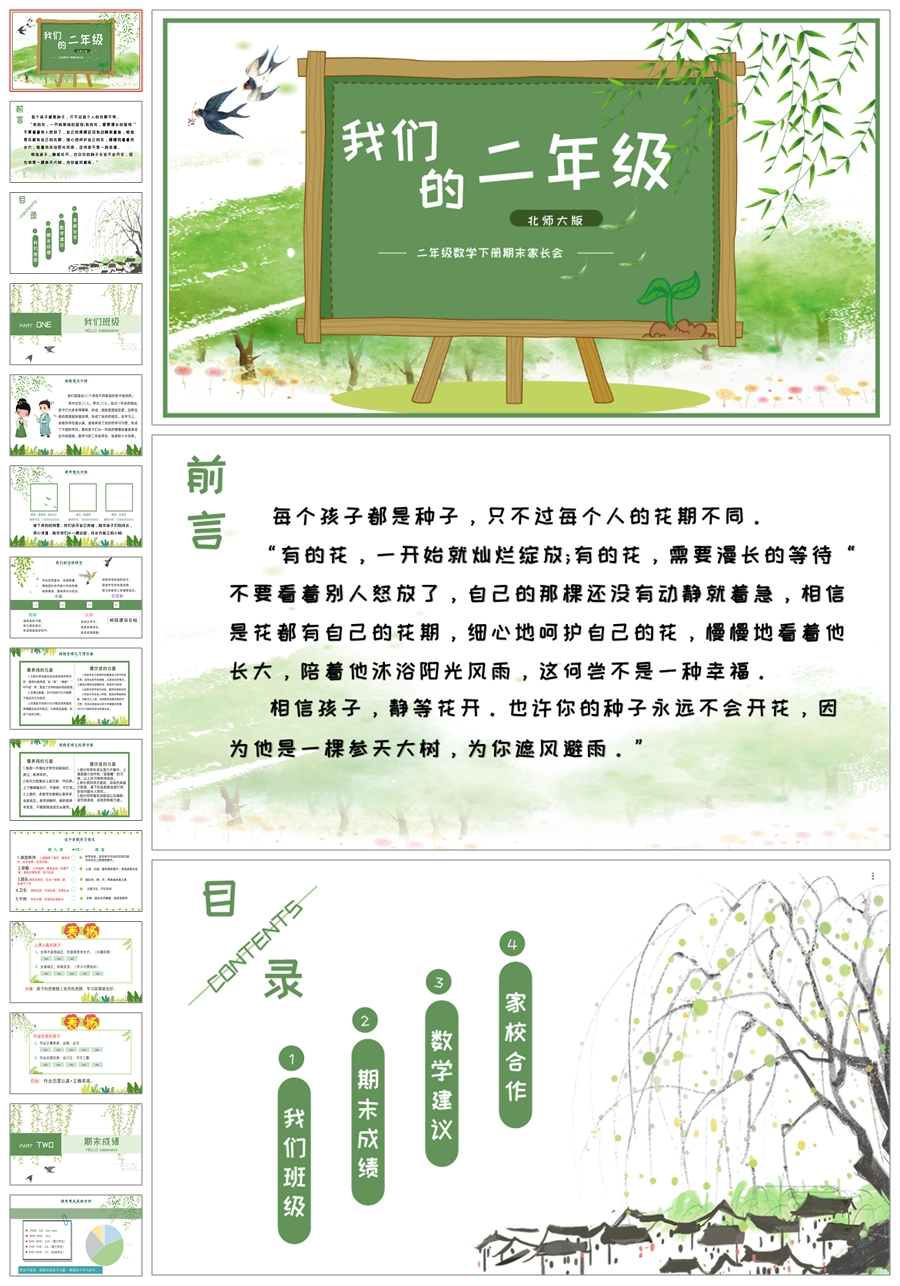 【5283】【二下】【数学】【我们的二年级】二年级下学期期末家长会(北师大版)PPT课件+发言稿